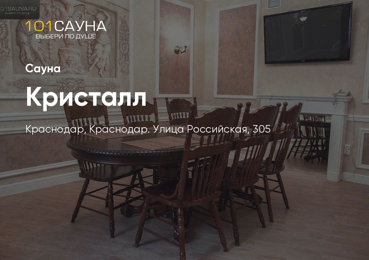 Сегодня отдыхали, в сауне Кристалл, просто супер!!!!!! Чистая, уютная, семейная сауна!!!!!!!!! Очень рекомендую!!!!!!! Российская305!!!!!!!!!! Отмечал...