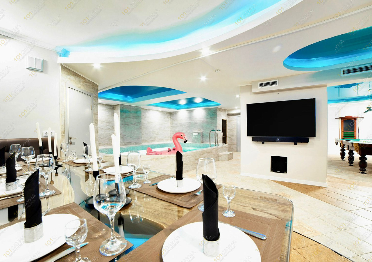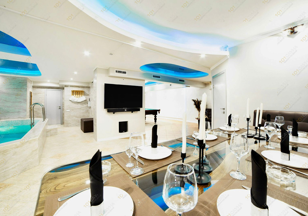 Предлагаем выбор услуг: Бассейн, зона отдыха со столом для гостей, бильярд, ТВ, караоке? меню ресторана, SPA программы, массаж, веники.