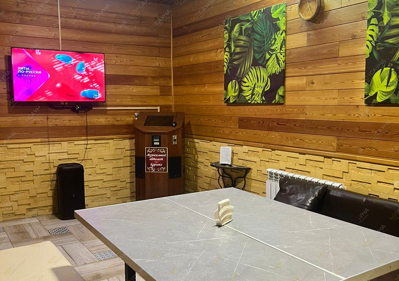 В вашем распоряжении — финская парная с веником, турецкий хамам, бассейн с системой фильтрации и подогрева воды, отдельная комната для отдыха, просторная гостиная с телевизором и караоке, настольный футбол, аэрохоккей, бильярд, напитки, кальян, самовар на углях и многое другое.