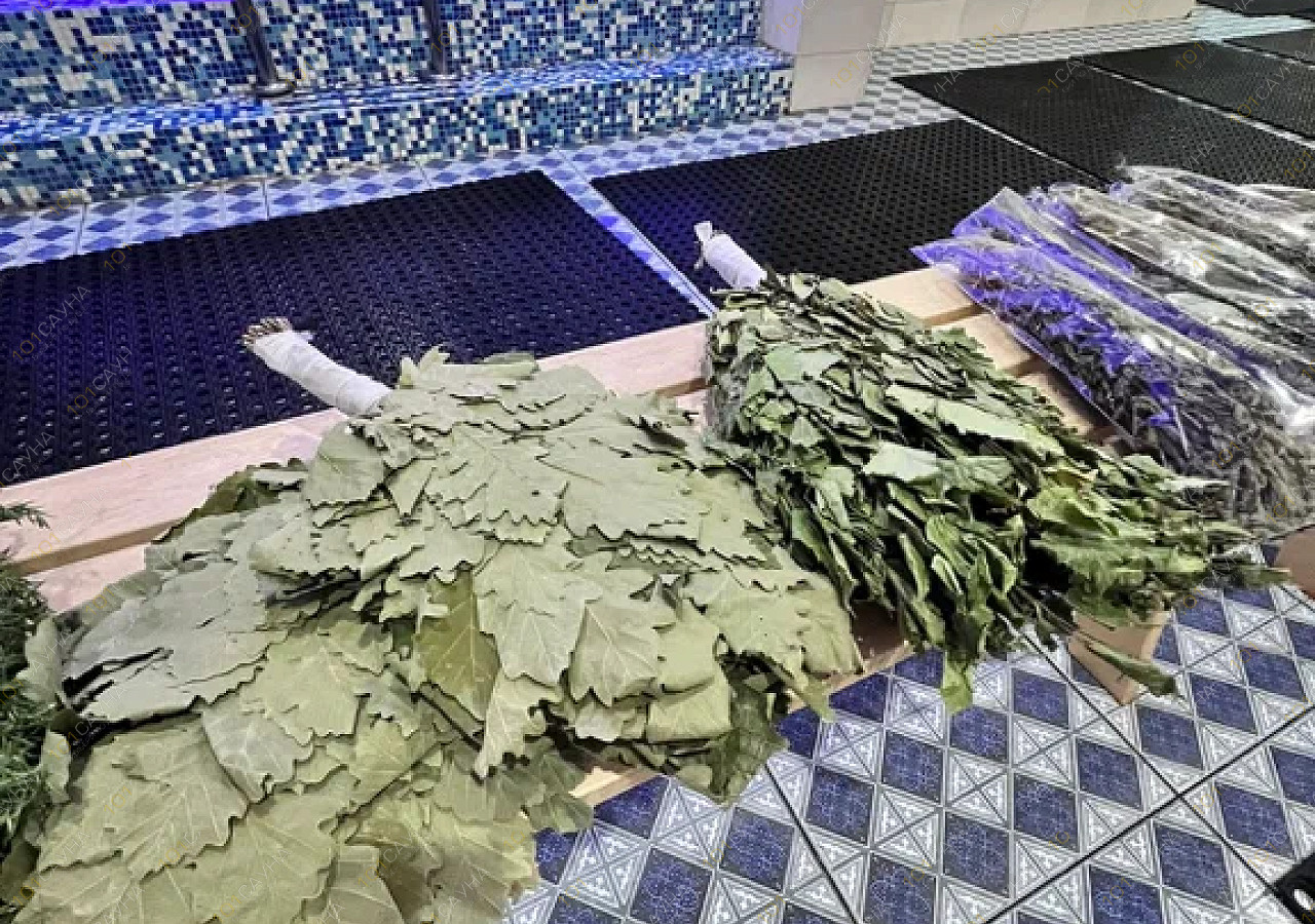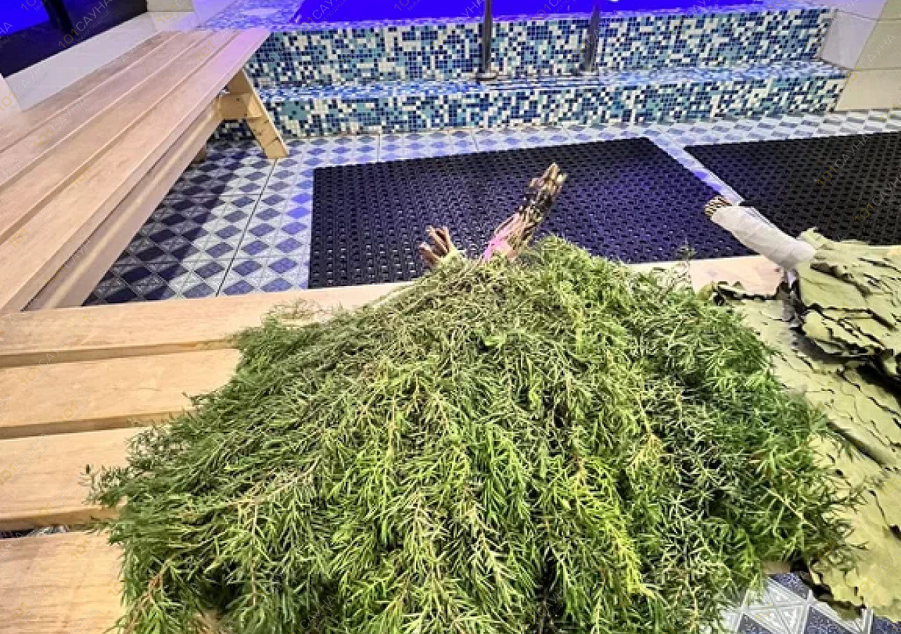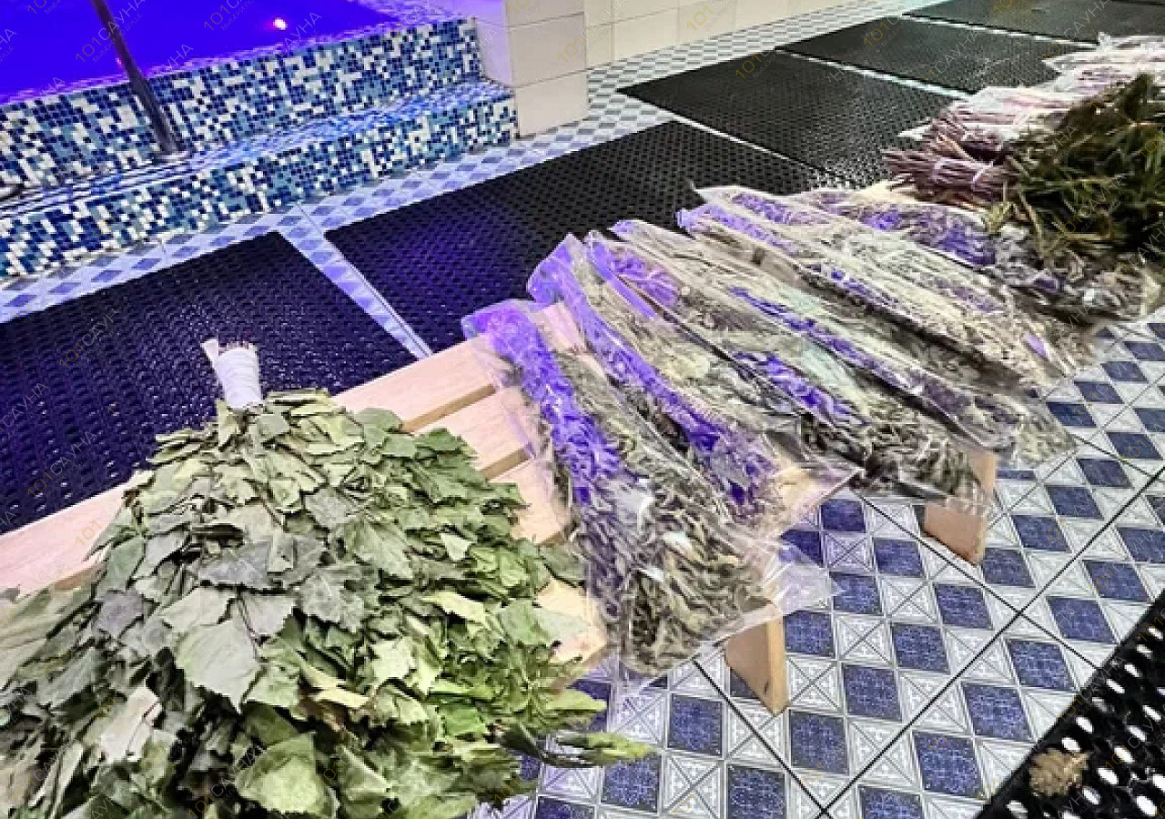 Предлагаем выбор услуг: бассейн, зона отдыха со столами для гостей, ТВ, веники, травы, можно париться с веником, банные принадлежности.
