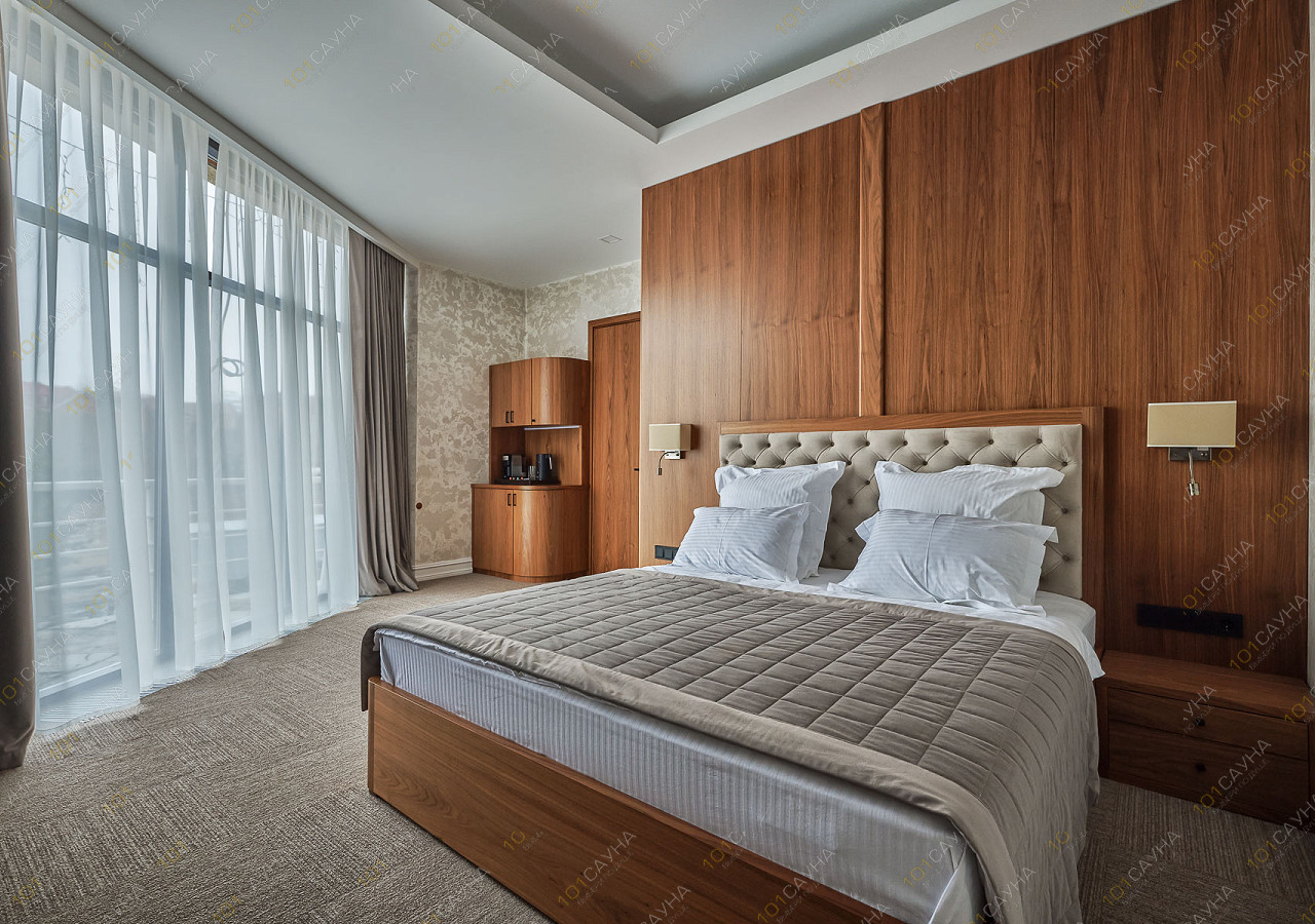 «Русский» - номер для тех, кто скучает по деревенской тишине и русской баньке с дурманящим ароматом смолы и хвойного леса. Уютный «рубленый домик» с резными ставенками, жаркой печкой и холодным кваском радушно встречает каждого гостя. Парная (90 – 120°С), бассейн с подсветкой и циркулирующей водой, уютная комната отдыха, санузел, две душевые, зона отдыха с большим столом, лавочками и стульями, спутниковое и кабельное телевидение, караоке, Wi-Fi – все с русским размахом. У персонала можно