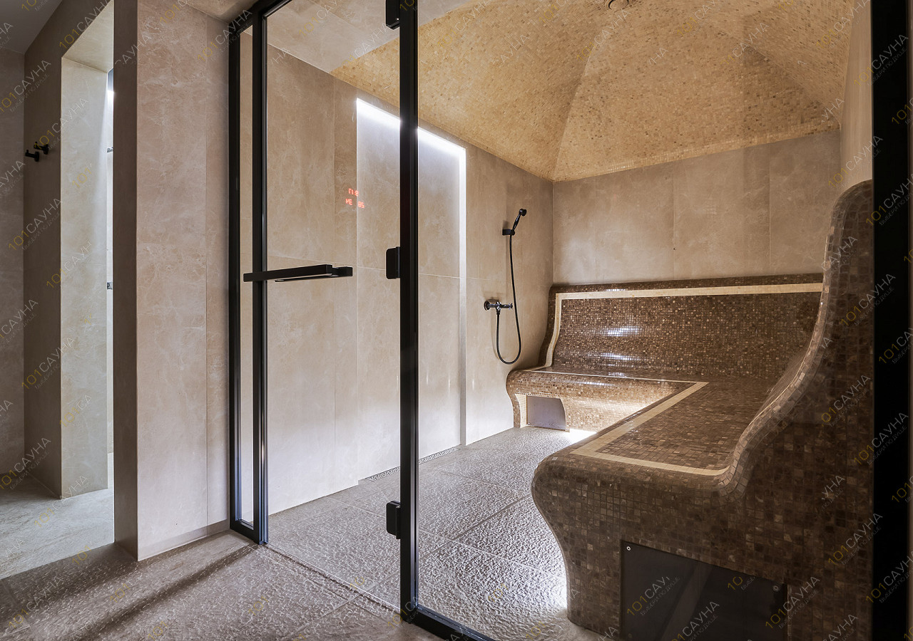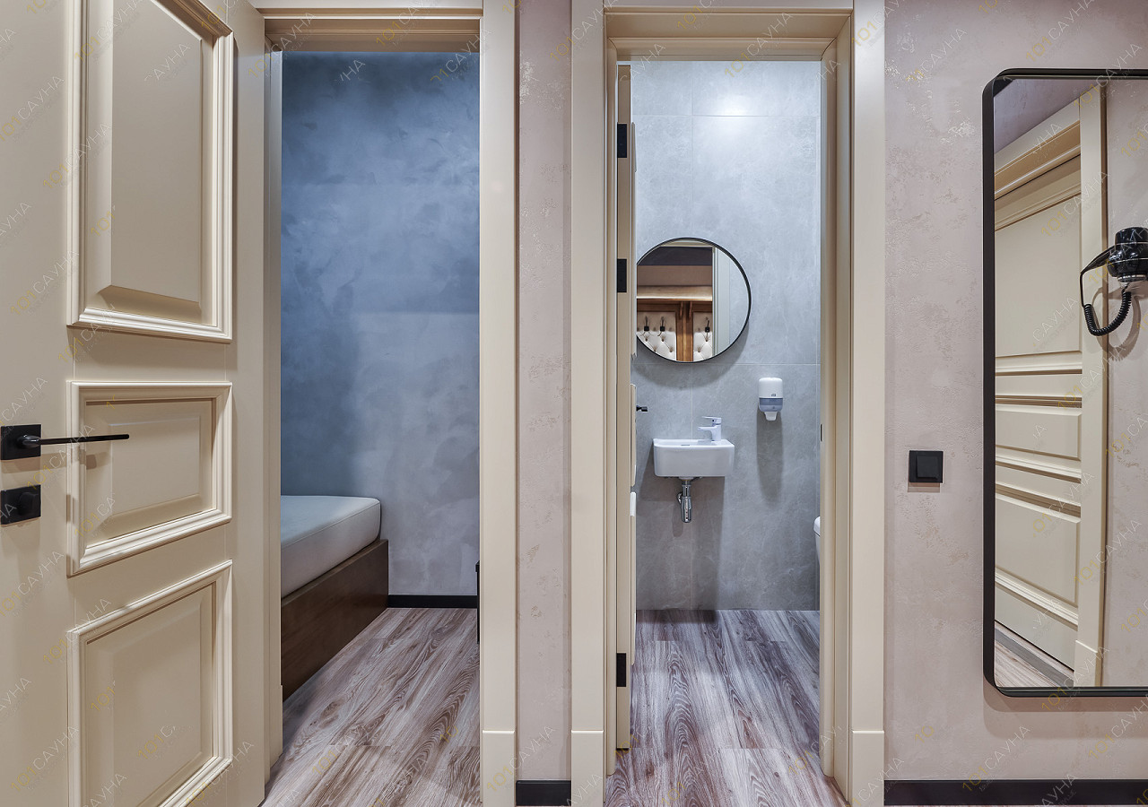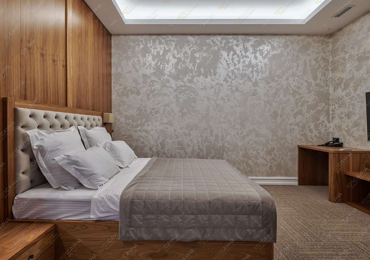 Небольшой уютный номер в восточном стиле прекрасно подойдет для тесной дружеской беседы или незабываемого романтического свидания. «Расслабонoff» – это парная (90 – 120°С), бассейн с подсветкой и циркулирующей водой, стильная комната отдыха, санузел, душевая, зона отдыха, телевидение, Wi-Fi.