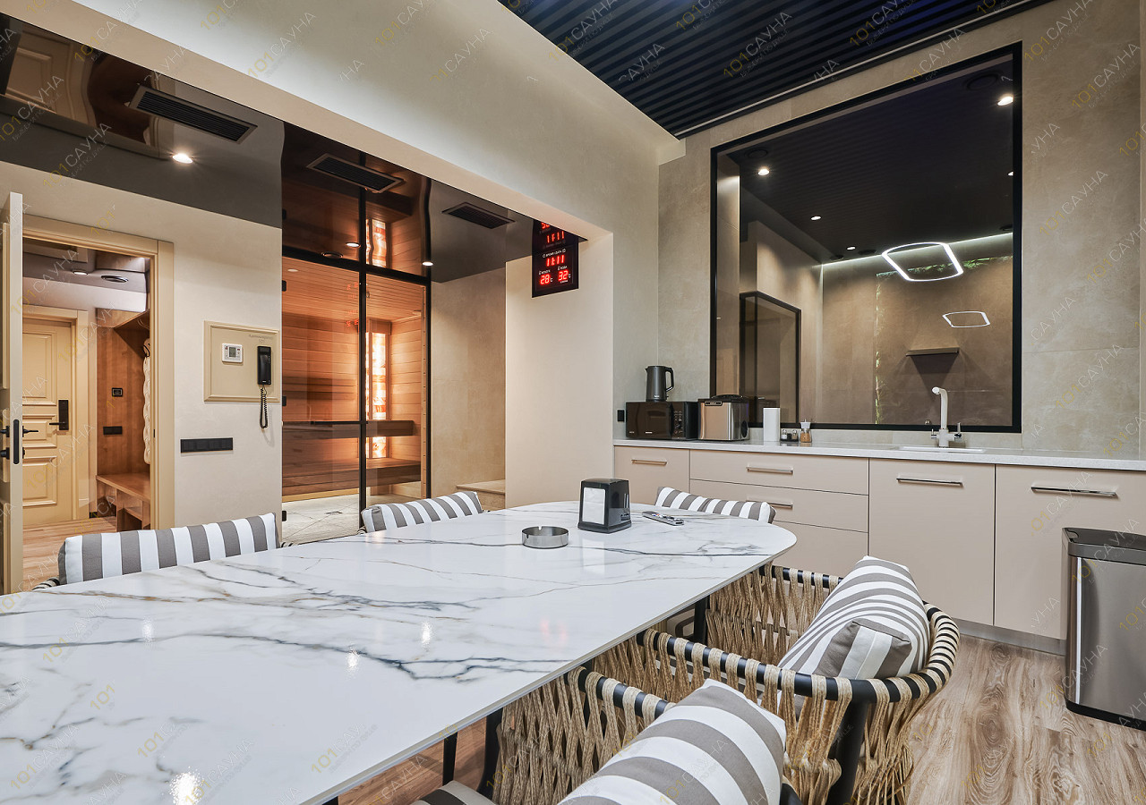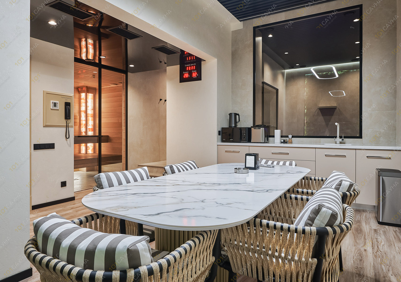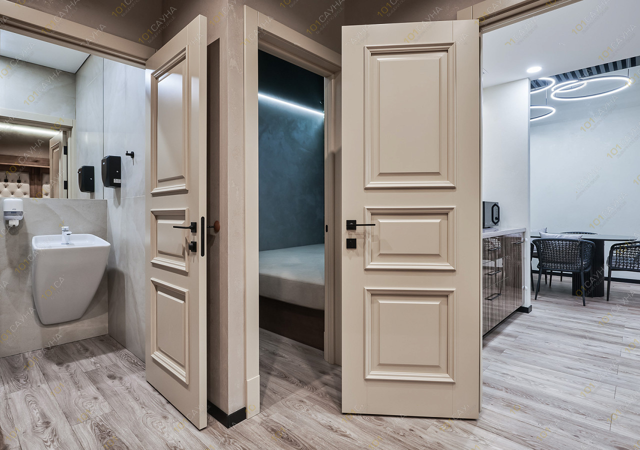 Небольшой уютный номер в восточном стиле прекрасно подойдет для тесной дружеской беседы или незабываемого романтического свидания. «Расслабонoff» – это парная (90 – 120°С), бассейн с подсветкой и циркулирующей водой, стильная комната отдыха, санузел, душевая, зона отдыха, телевидение, Wi-Fi.