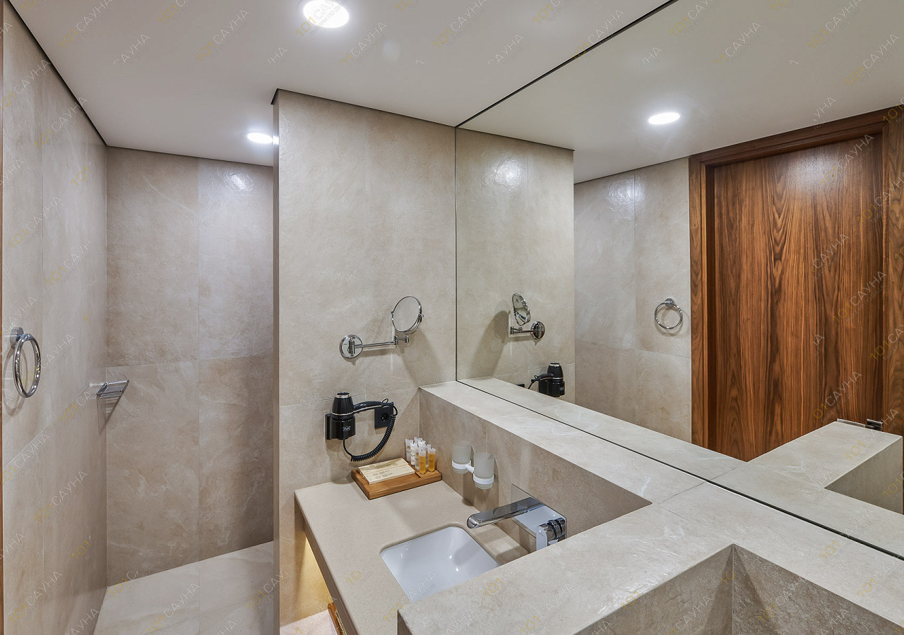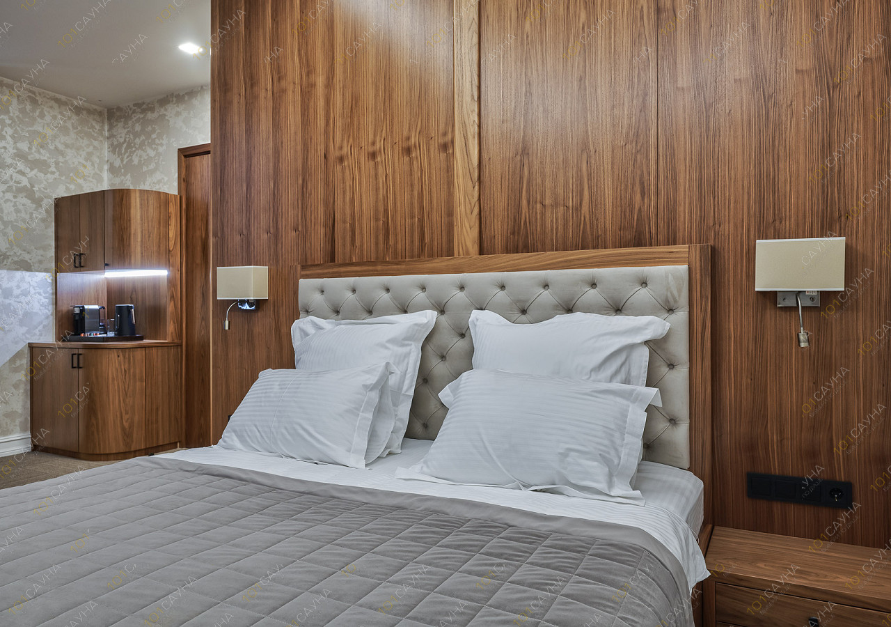 Финская сауна поднимет градус Ваших чувств, бассейн охладит пыл, а ванна с пеной подарит нежность и теплоту. В номере: шикарная спальная зона, кальянная зона, финская сауна, бассейн, роскошная ванная, душевая, санузел.