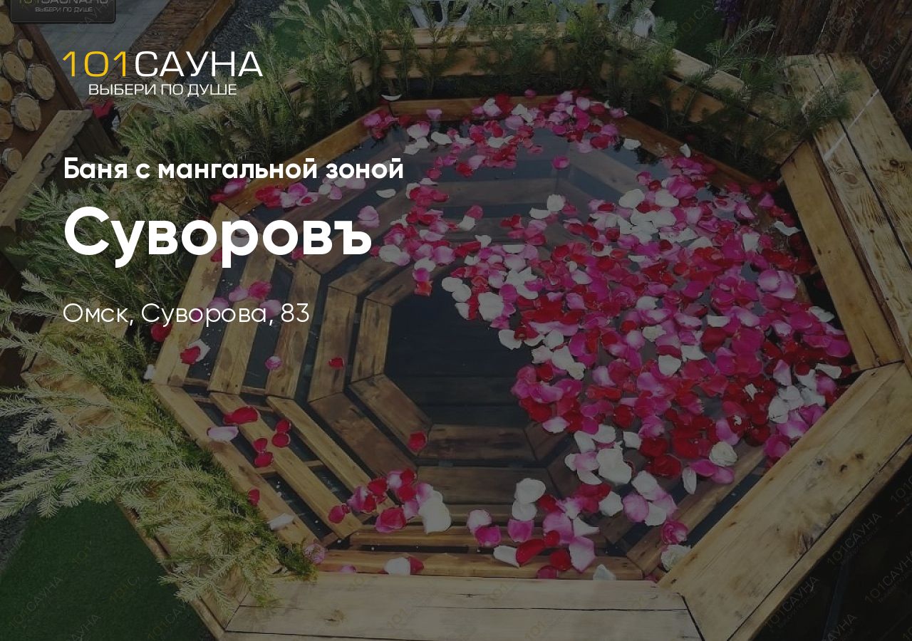 Русская баня "Суворовъ" приглашает всех любителей парного досуга отлично провести время в кругу семьи, друзей или близких вам людей. Вас ждет русская банька на дровах, с веником, обливное устройство водопад с холодной водой, мангальная зона с казаном, банный чан , музыкальный центр с bluetooth, фото зона, детский уголок с песочницей, качелью и горкой.