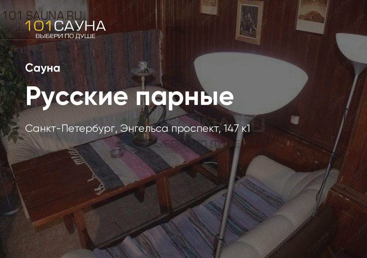 Русские парные — круглосуточный банный комплекс в Выборгском районе Санкт-Петербурга, расположенный на проспекте Энгельса, 147 к1, в 10 минутах ходьбы от метро «Проспект Просвещения», напротив ТЦ «Гранд Каньон».