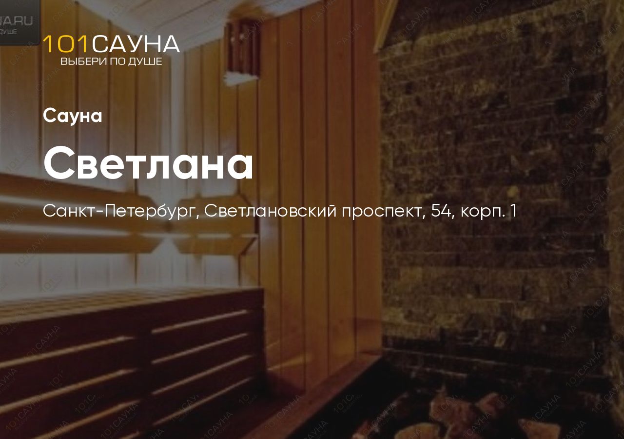 Сауна Светлана расположена по адресу Светлановский проспект, 54, корп. 1, в шаговой доступности от метро Гражданский проспект. Заведение работает круглосуточно и предлагает три варианта номеров: малый, средний и большой люкс — для компаний любого размера.