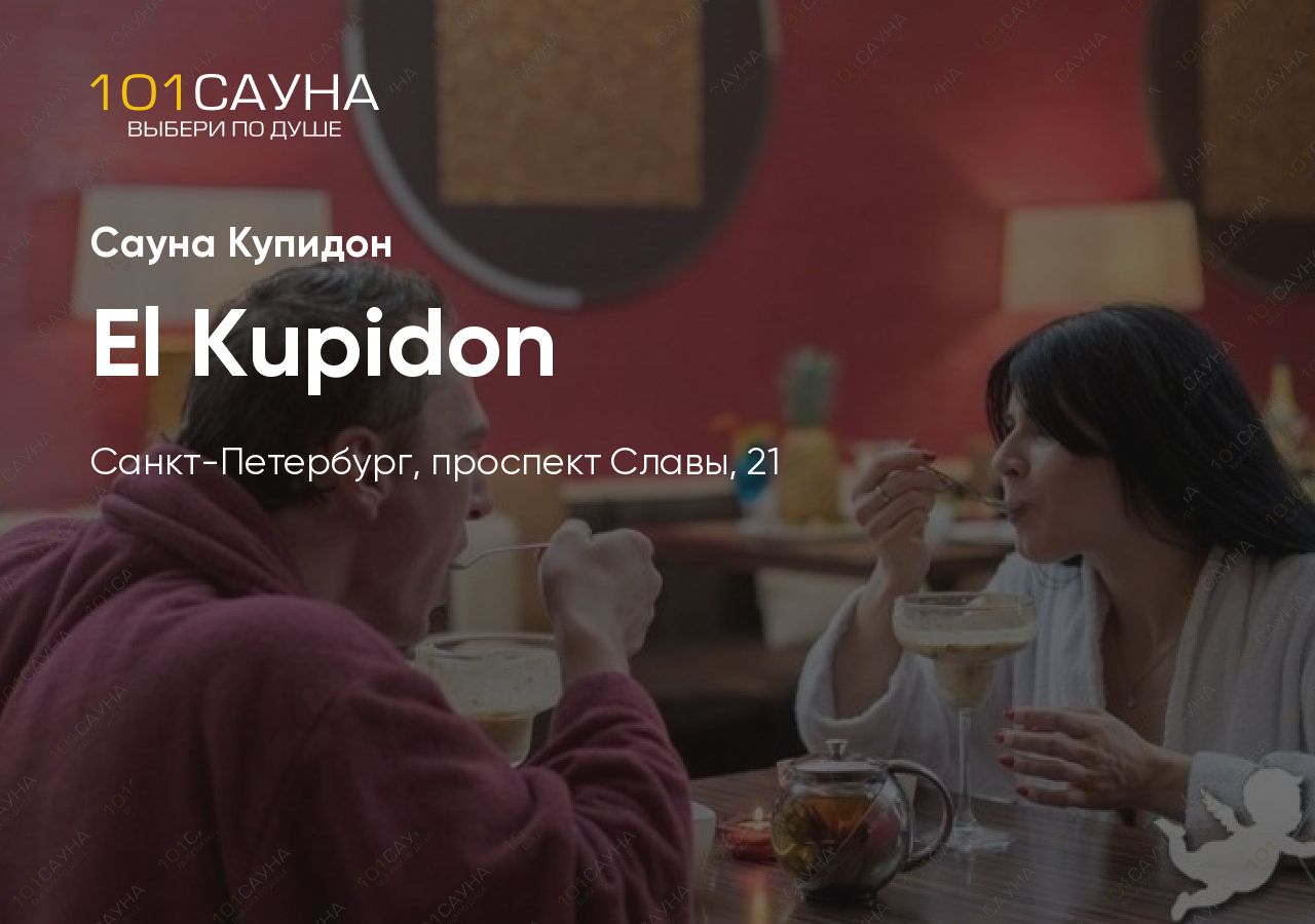 El Kupidon — премиальный СПА-комплекс на проспекте Славы, занимающий площадь более 400 кв.м. Заведение работает круглосуточно и предлагает гостям роскошный отдых с полным набором банных и оздоровительных услуг.