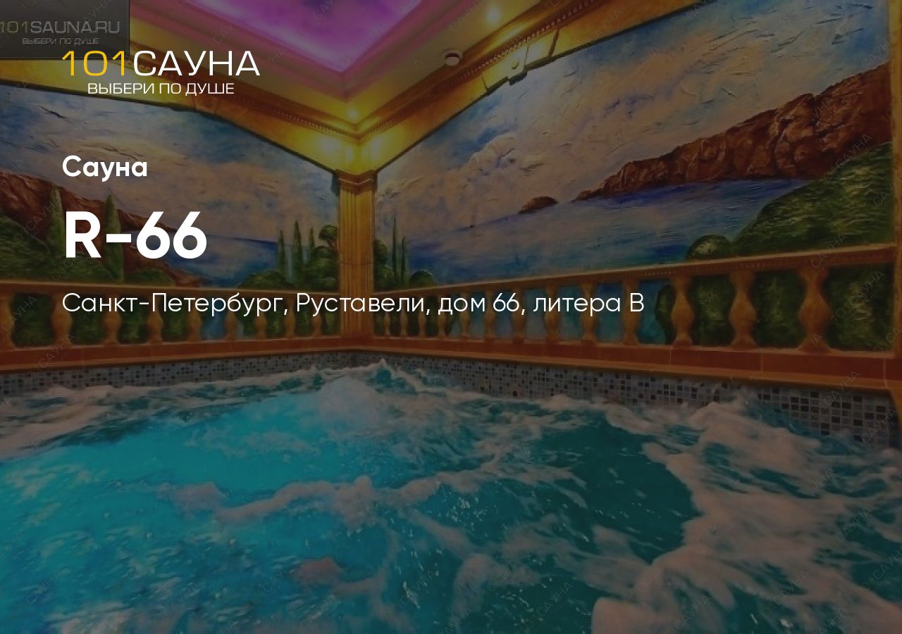 Сауна-люкс R-66 — это два роскошных банных номера на улице Руставели, 66В, в Калининском районе Санкт-Петербурга. Заведение расположено в 10 минутах ходьбы от станции метро Гражданский проспект и работает круглосуточно.