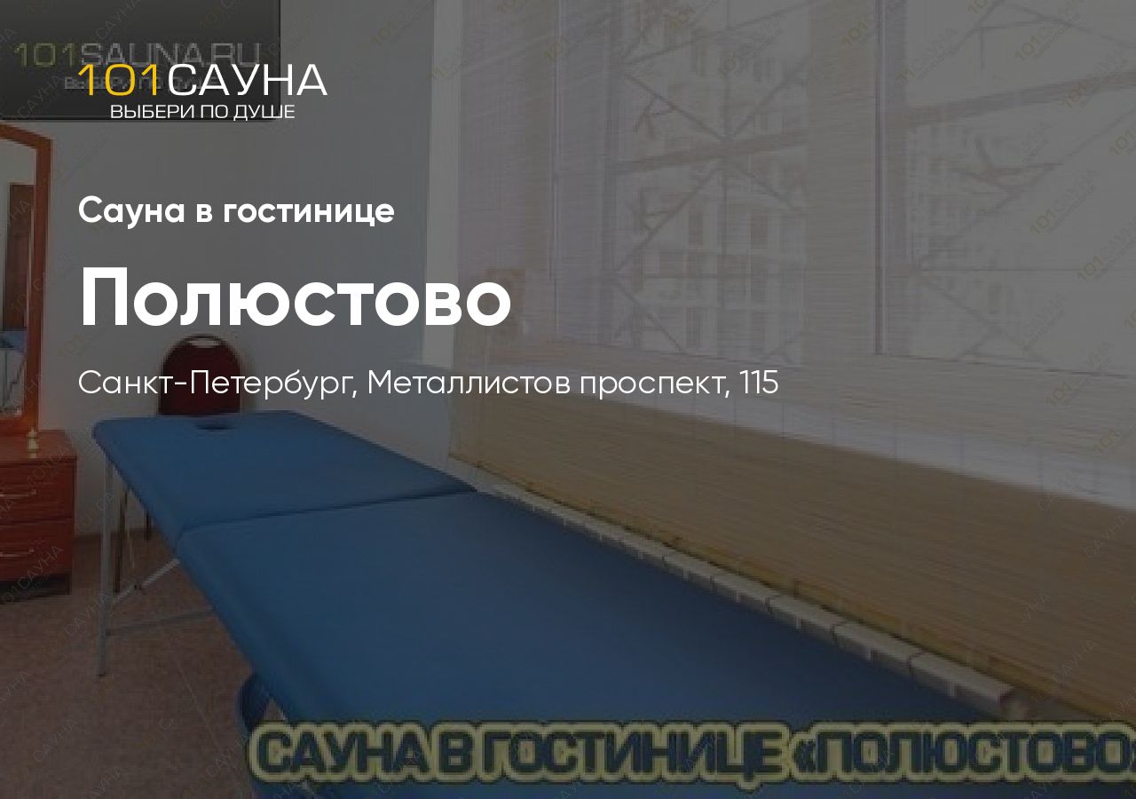 Сауна при отеле «Полюстрово» расположена на проспекте Металлистов в Калининском районе, недалеко от станции метро Площадь Ленина. Двухуровневый комплекс вмещает до 12 гостей и оборудован всем необходимым для полноценного отдыха.