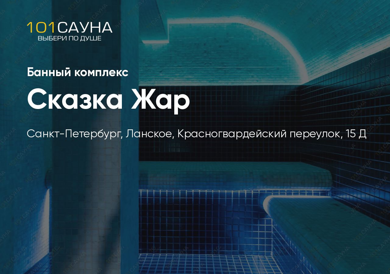 Сказка Жар — уютный банный комплекс в Приморском районе Санкт-Петербурга, расположенный по адресу Красногвардейский переулок, 15Д. Комплекс предлагает две уникальные зоны для полноценного отдыха и оздоровления.