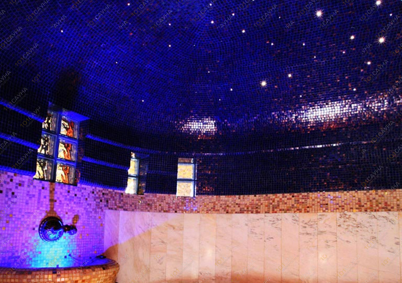 В распоряжении гостей — финская сауна с ароматным паром и натуральной отделкой, хаммам с куполом «звёздное небо» и мягким влажным теплом, а также просторный бассейн с водопадом для отдыха и восстановления после банных процедур.