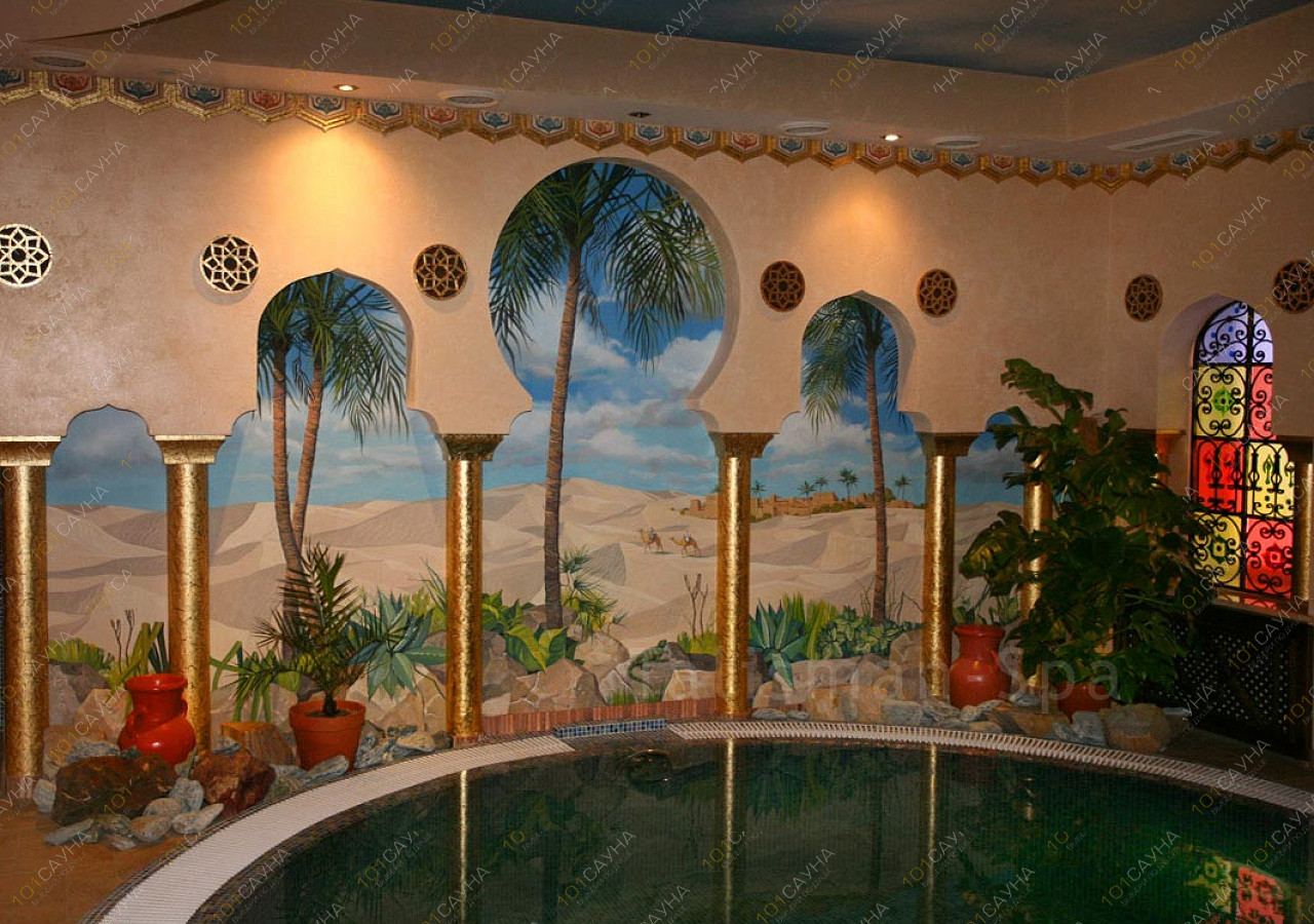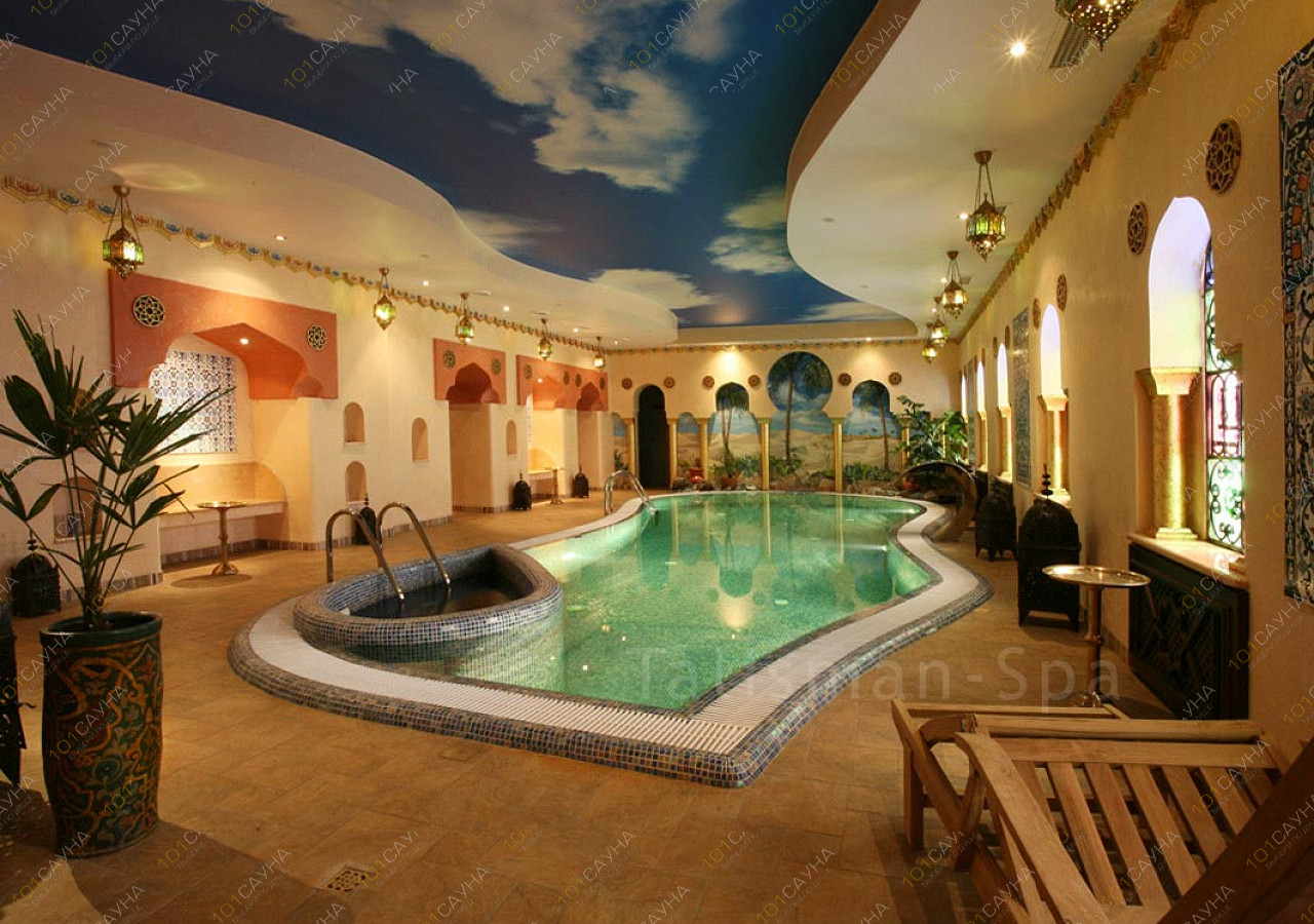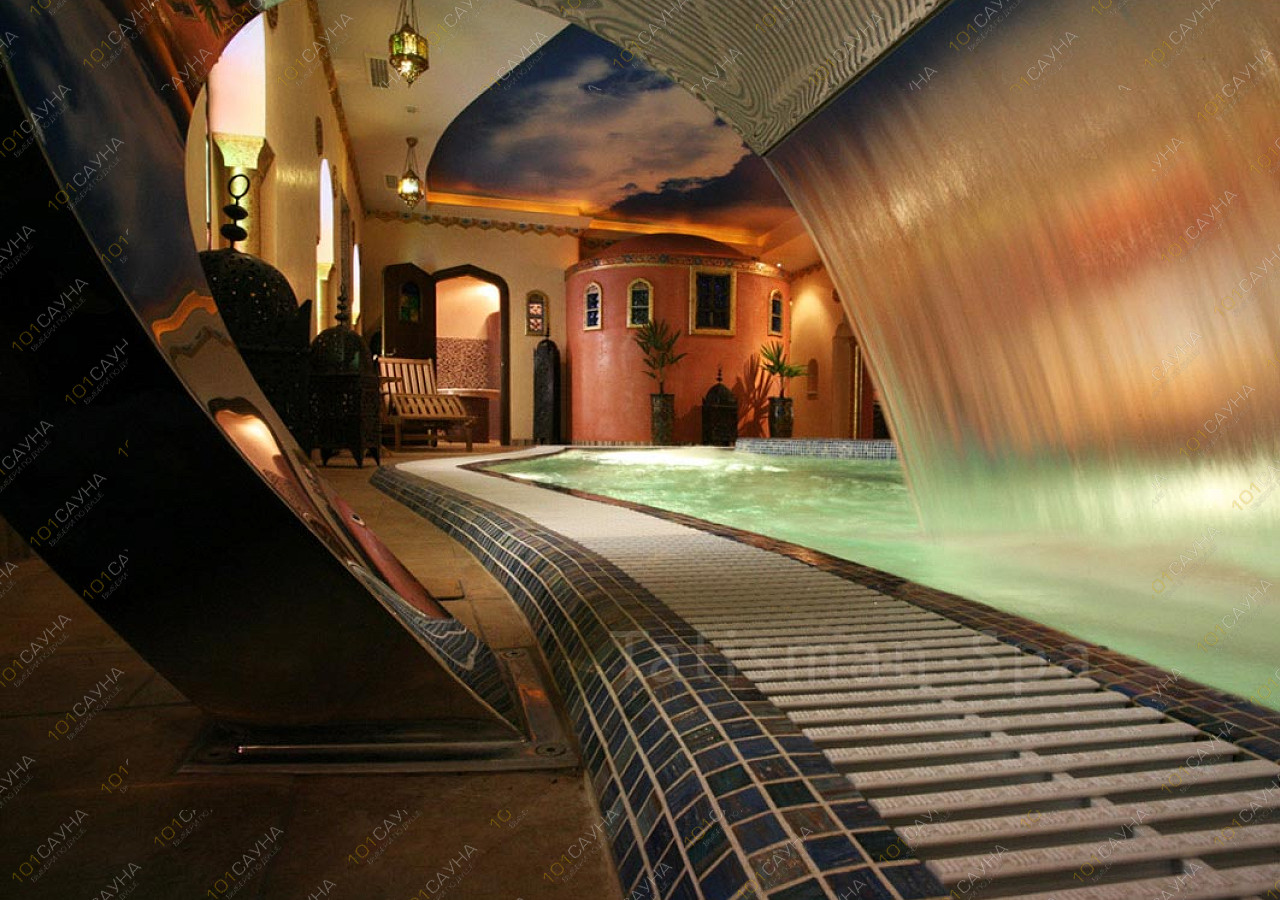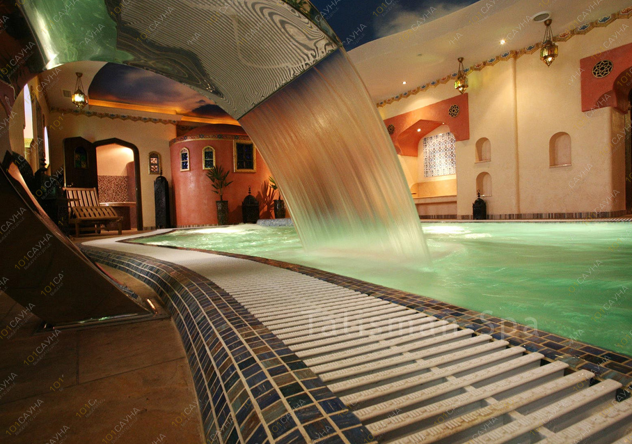 Предлагаем выбор услуг: Финская сауна, хаммам, бассейн с водопадом, комната отдыха.