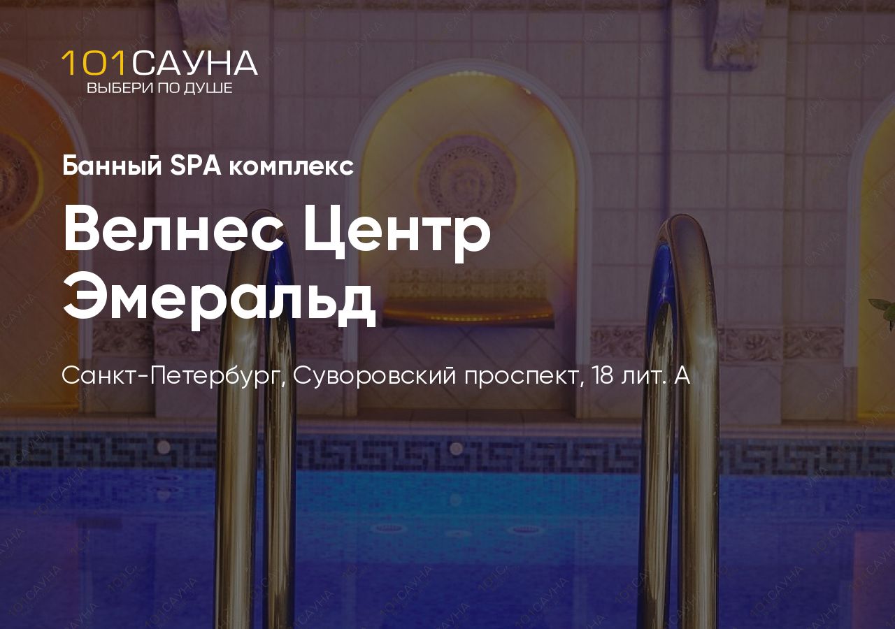 Велнес Центр Эмеральд расположен в историческом центре Санкт-Петербурга, в составе пятизвёздочного «Гранд Отель Эмеральд» на Суворовском проспекте. Комплекс предлагает уникальное сочетание традиционных банных процедур и современных СПА-ритуалов в роскошной обстановке.