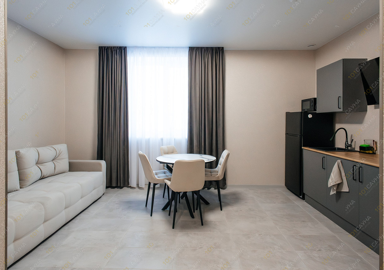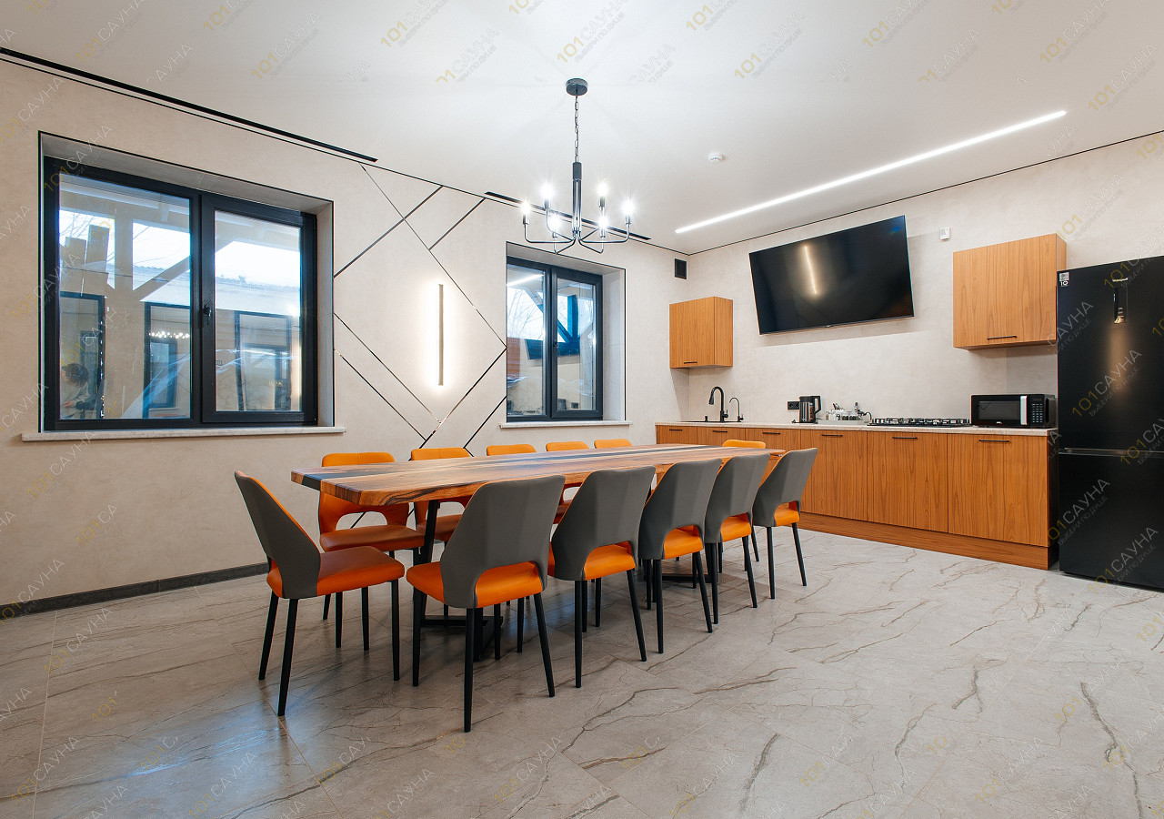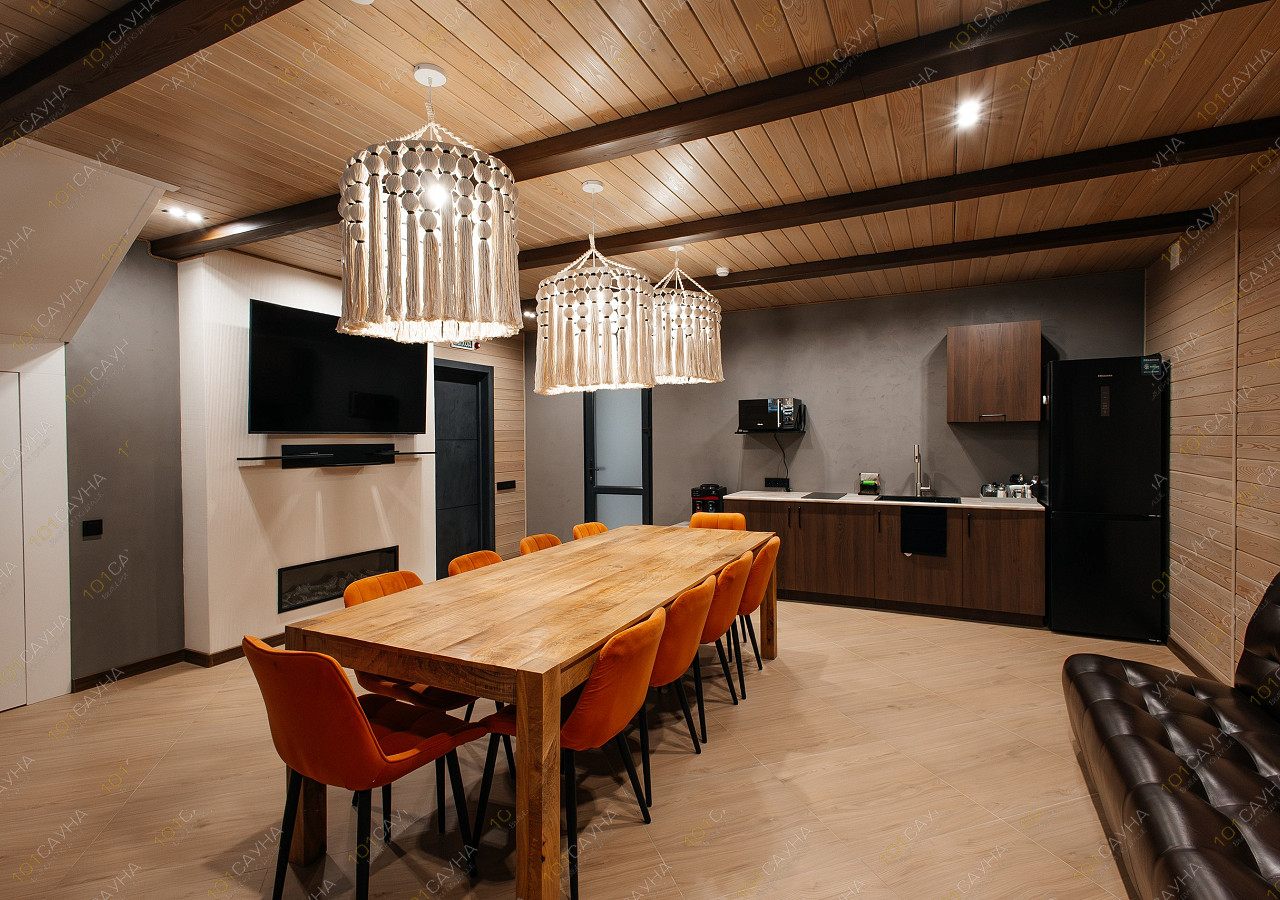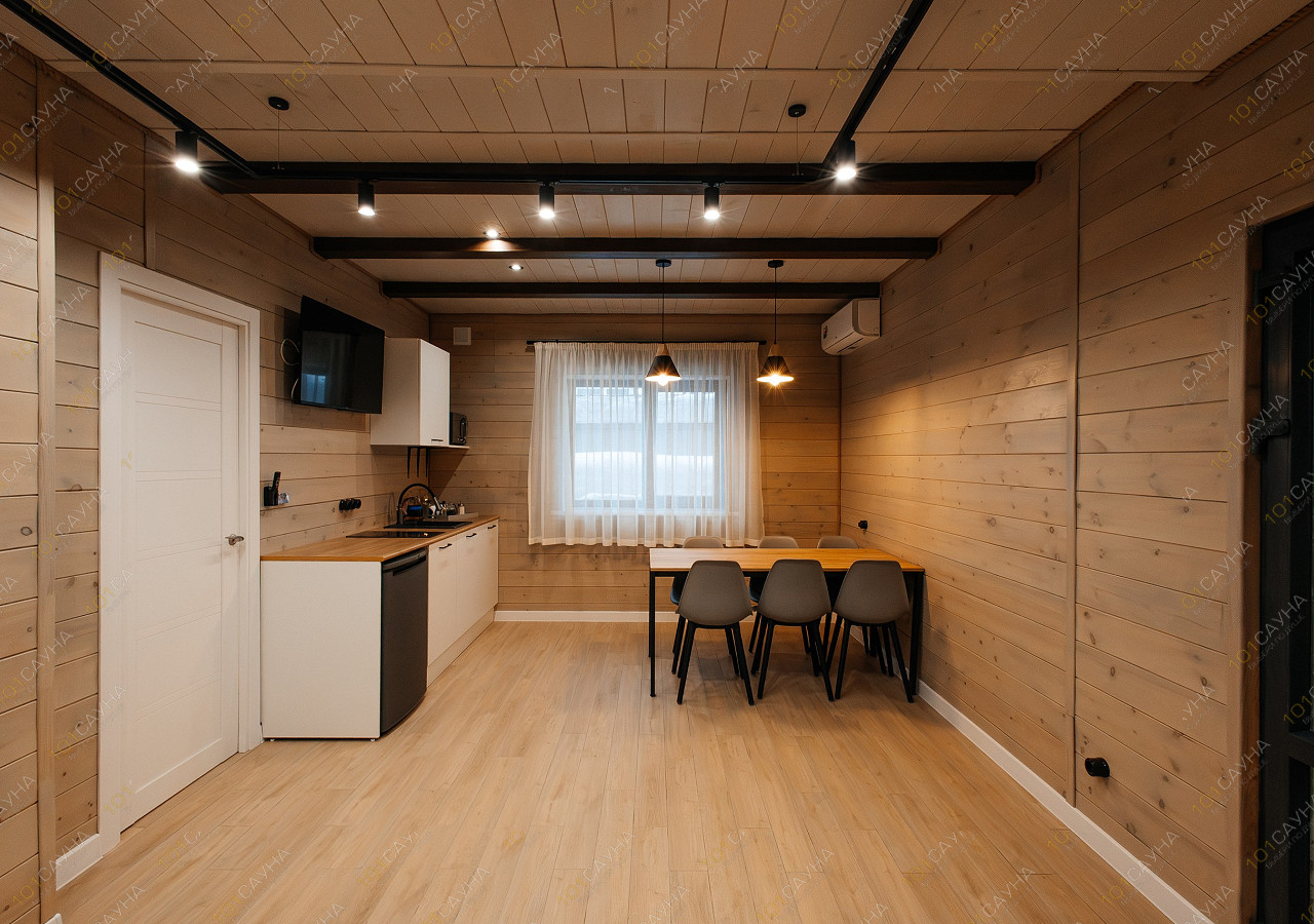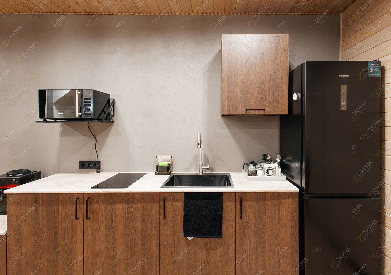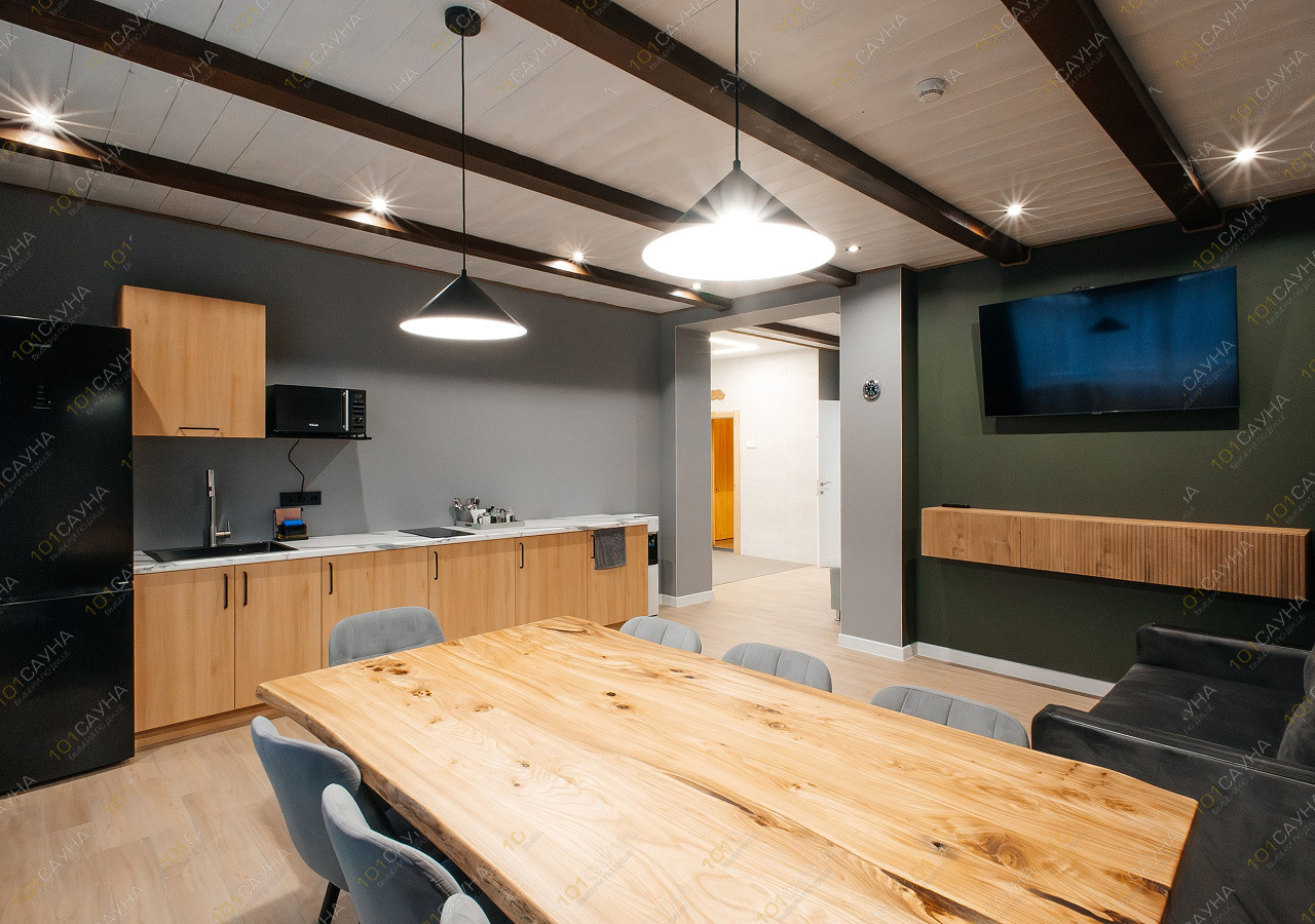 гостиная с кухонной зоной (вся необходимая посуда, столовые приборы). Витаминный чай; сауна с вениками.