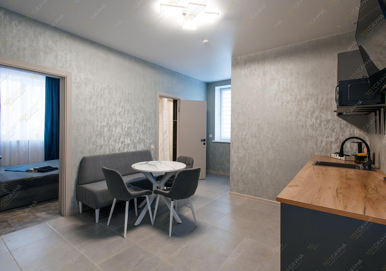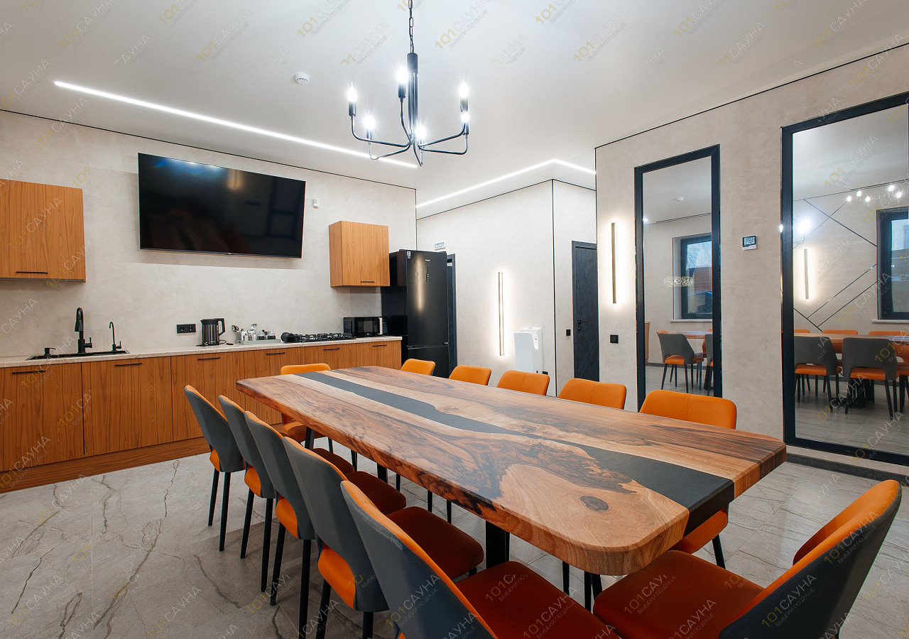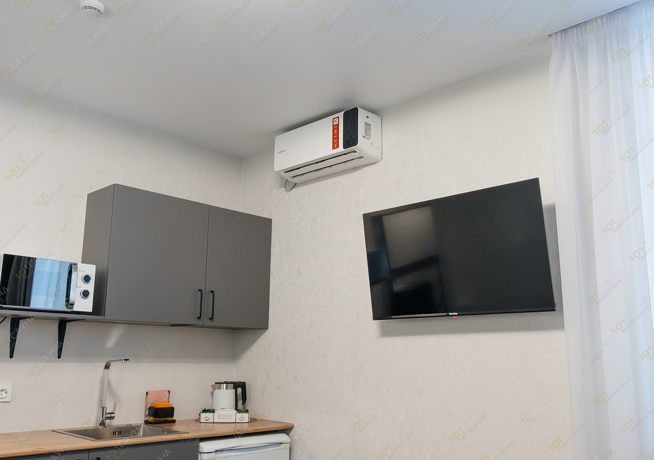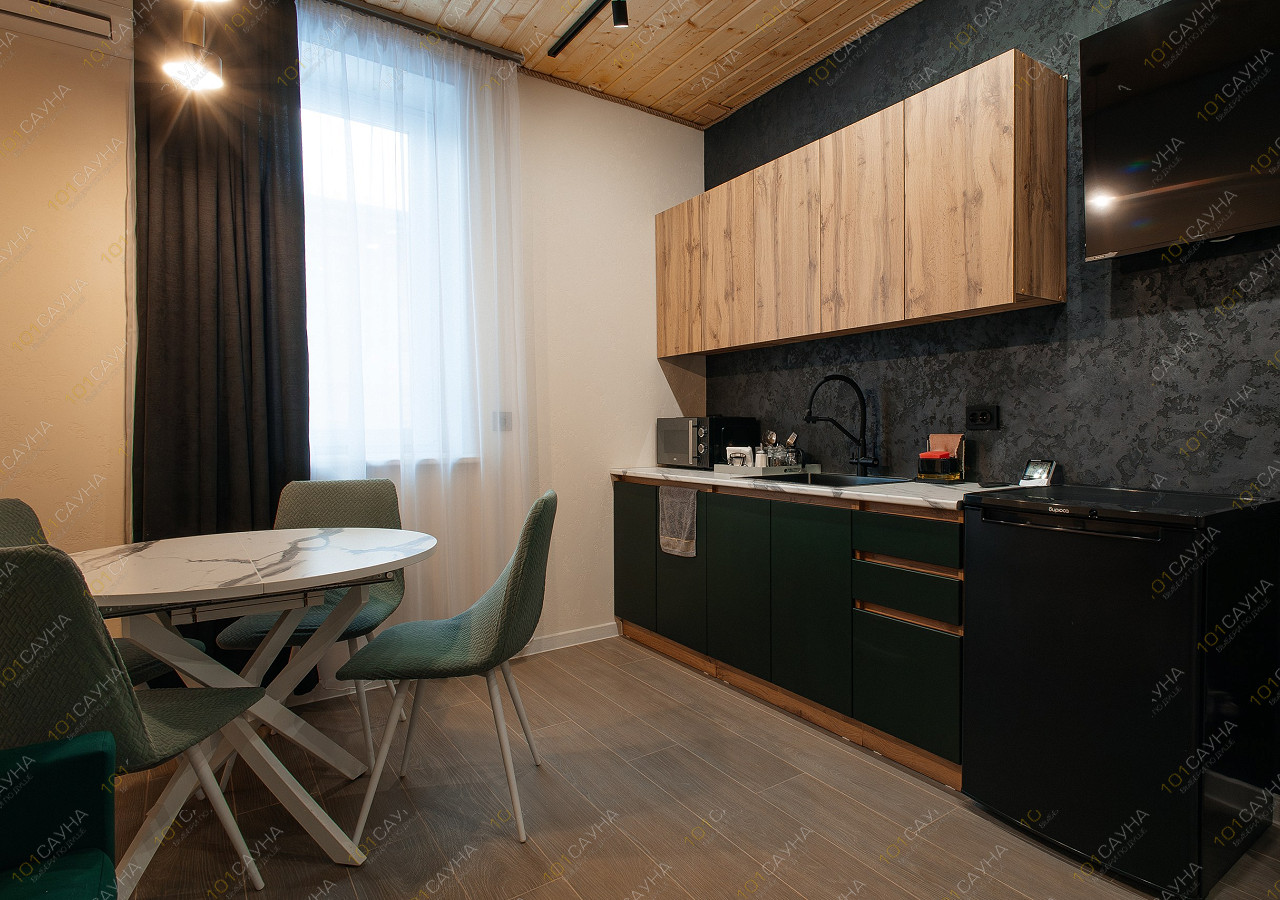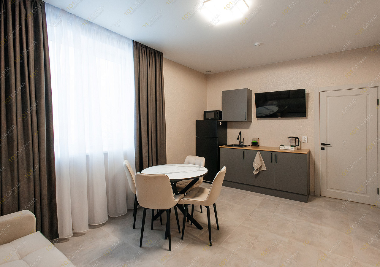 гостиная с кухонной зоной (вся необходимая посуда, столовые приборы). Витаминный чай; сауна с вениками.