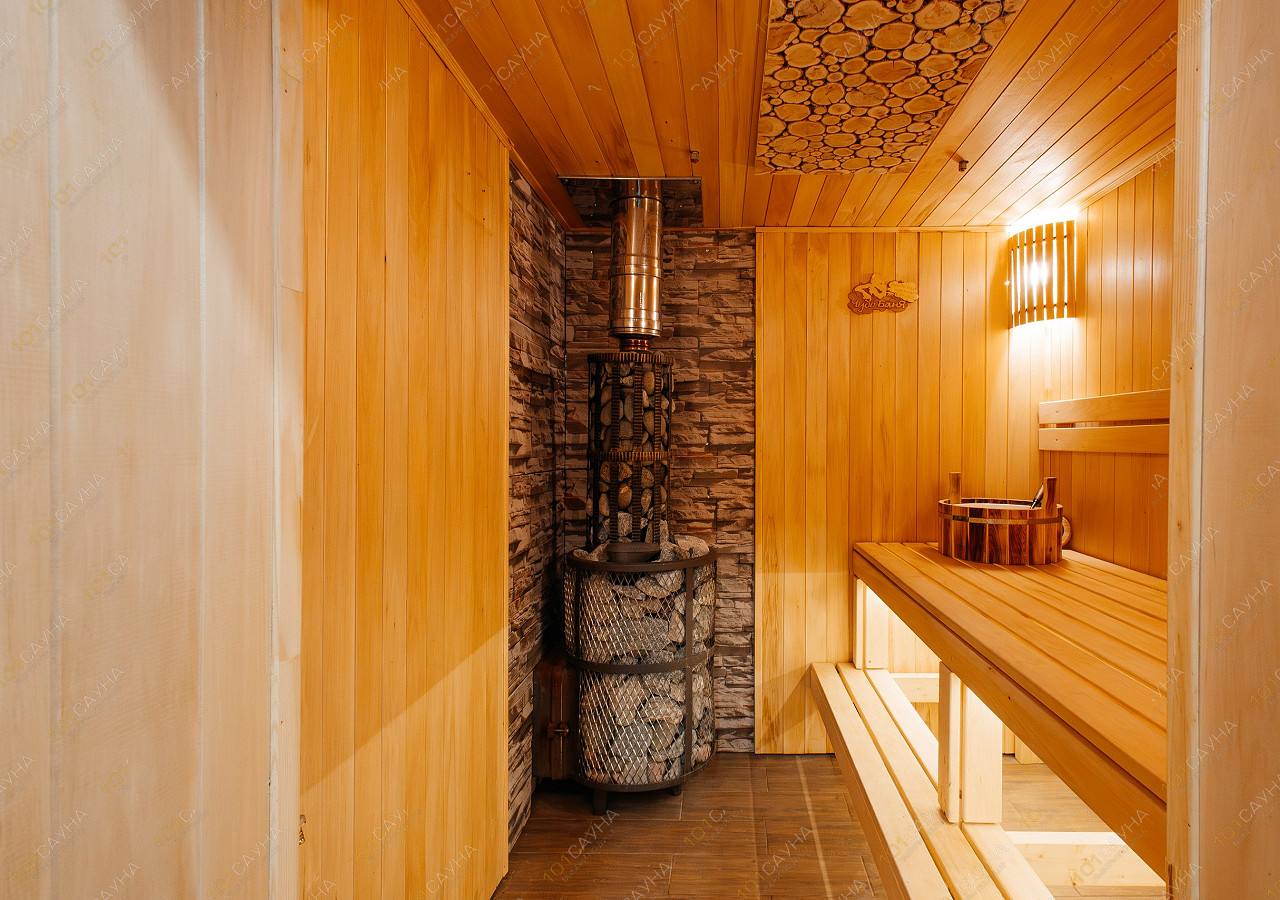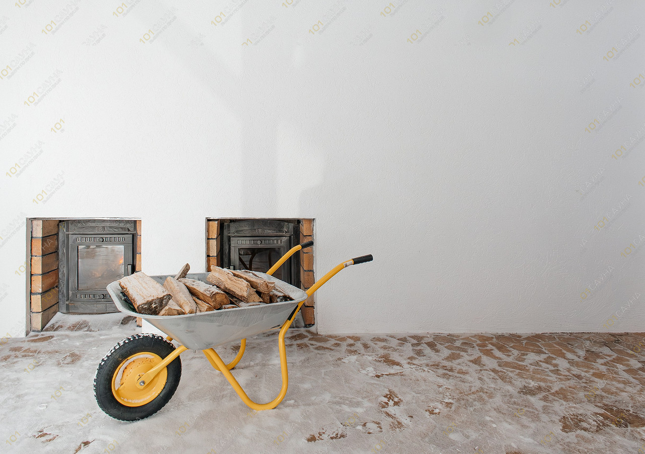 просторная парная для компании, печь на дровах;