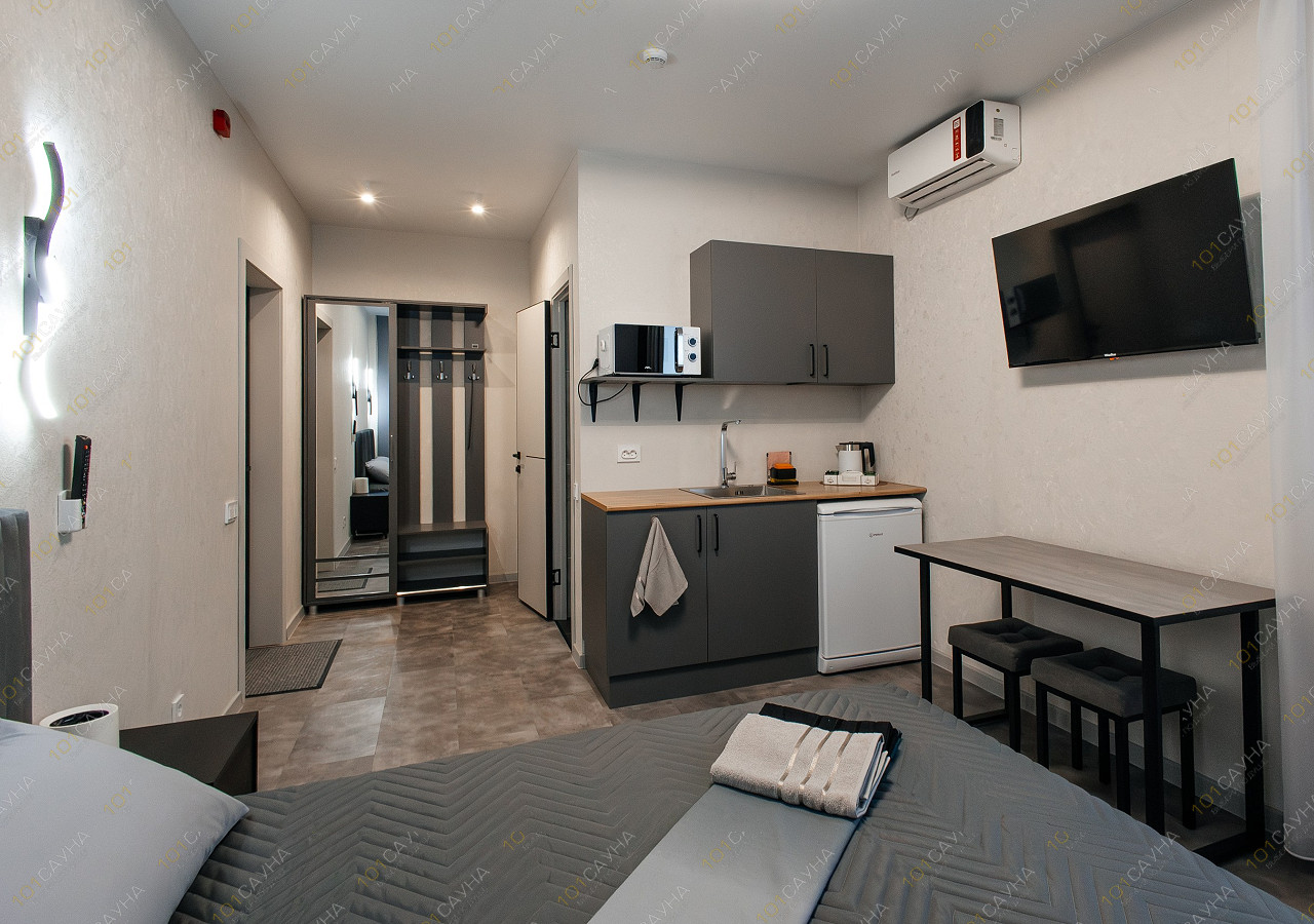 Однокомнатная студия 22 кв.м., вместимость 2 человека.