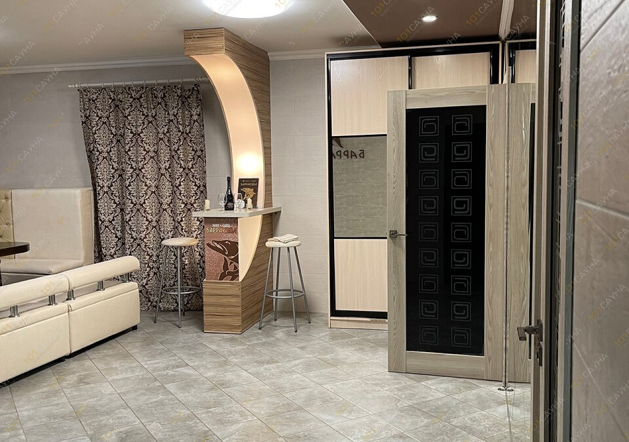 Просторная комната отдыха с барной стойкой — идеальное место для отдыха между заходами в парную. Здесь можно: