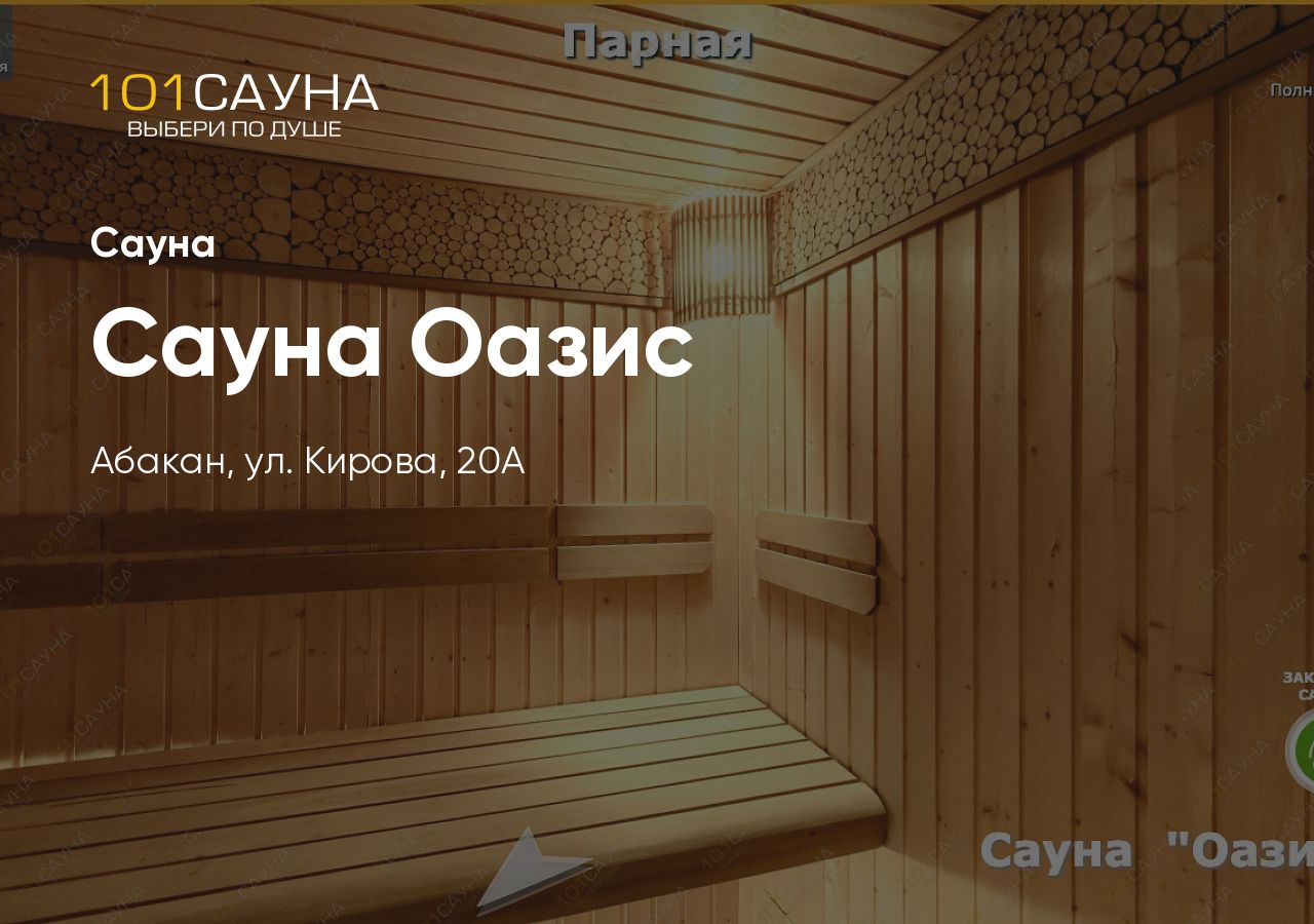 Сауна «Оазис» — уютное место для отдыха небольшой компанией в самом центре Абакана, по адресу ул. Кирова, 20А. Работает круглосуточно, без выходных.