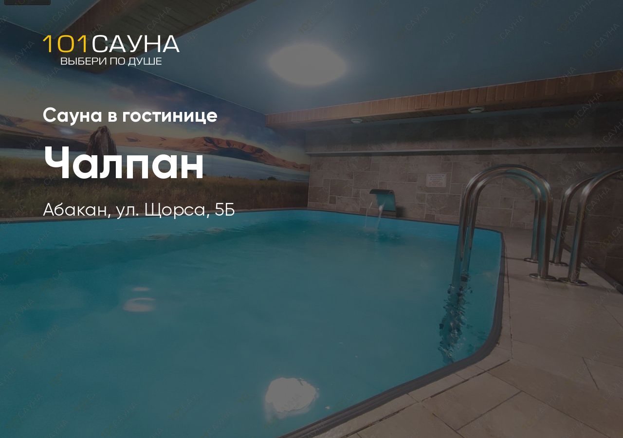 Гостиница Чалпан на улице Щорса, 5Б предлагает просторную сауну с большим бассейном для комфортного отдыха. Рейтинг 5.0 на Яндекс Картах — одно из лучших заведений Абакана.