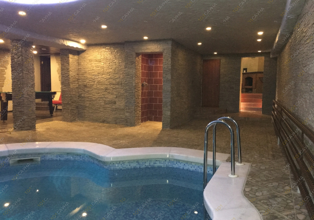В распоряжении посетителей — финская сауна и русская парная с качественными печами и натуральными вениками. Каждый банный номер оборудован просторным бассейном с подогревом воды, декоративным водопадом и зоной для купания. Интерьеры выполнены в стиле натурального камня с деревянными элементами, создающими атмосферу уюта и релаксации.