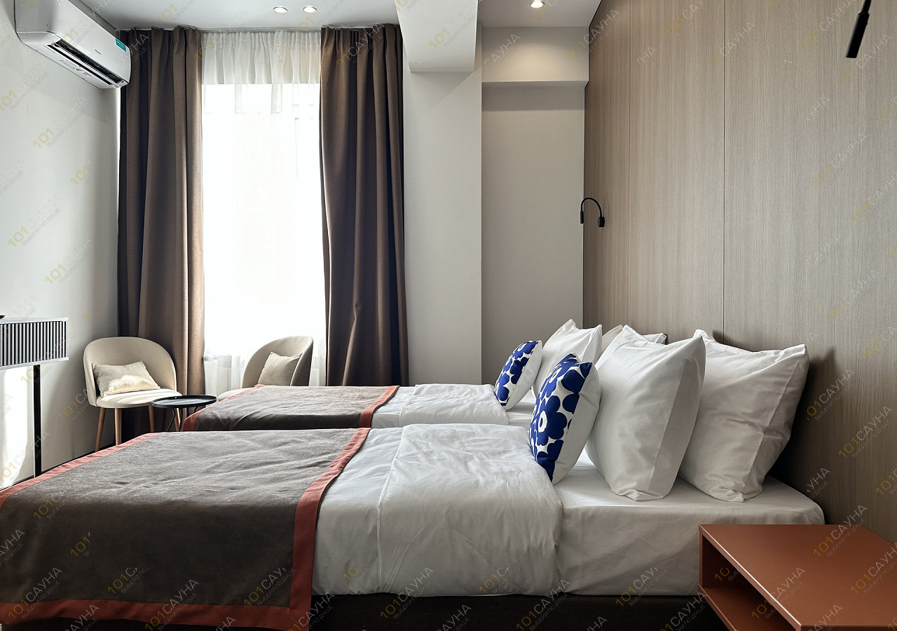 Просторные зоны отдыха с караоке, меню полезных напитков от ресторана «Числа» и возможность уединения в отдельных банных апартаментах.