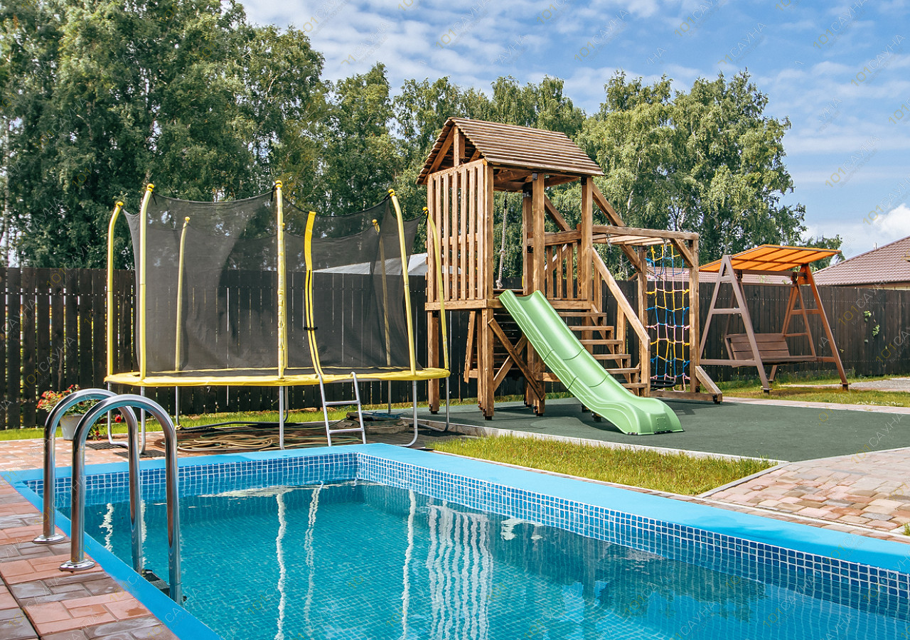 На территории так-же находится мангальная зона, теннисный стол, качели, детская площадка, батут.