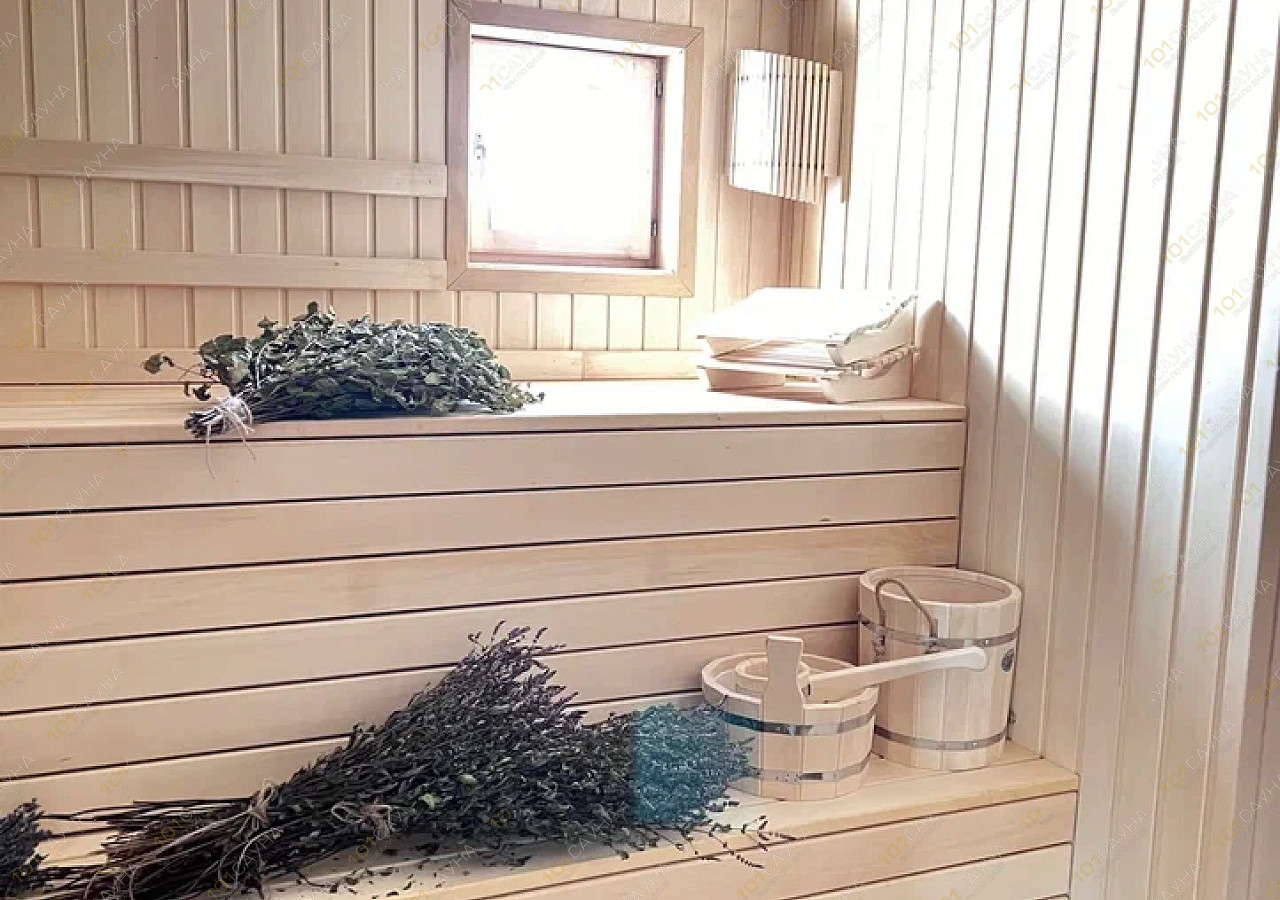 В бане отдельная комната с топкой, где вы сможете посидеть и выпить ароматного травяного чая с эфирным маслом лаванды, которое выращено на территории парка. В стоимость сеанса включено пользование полотенцами и одноразовыми тапочками.