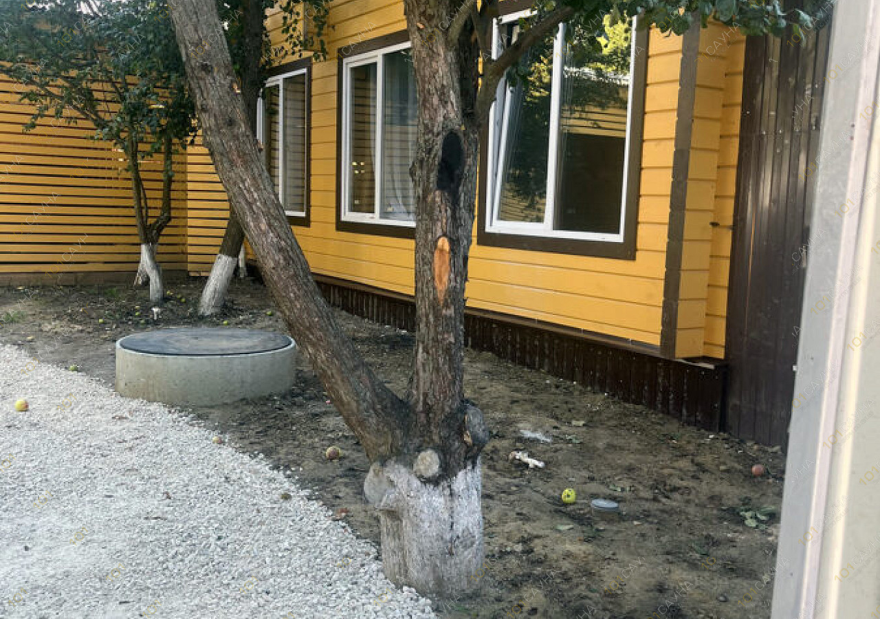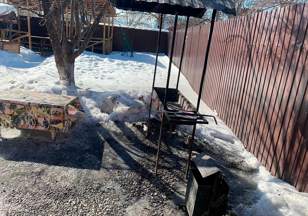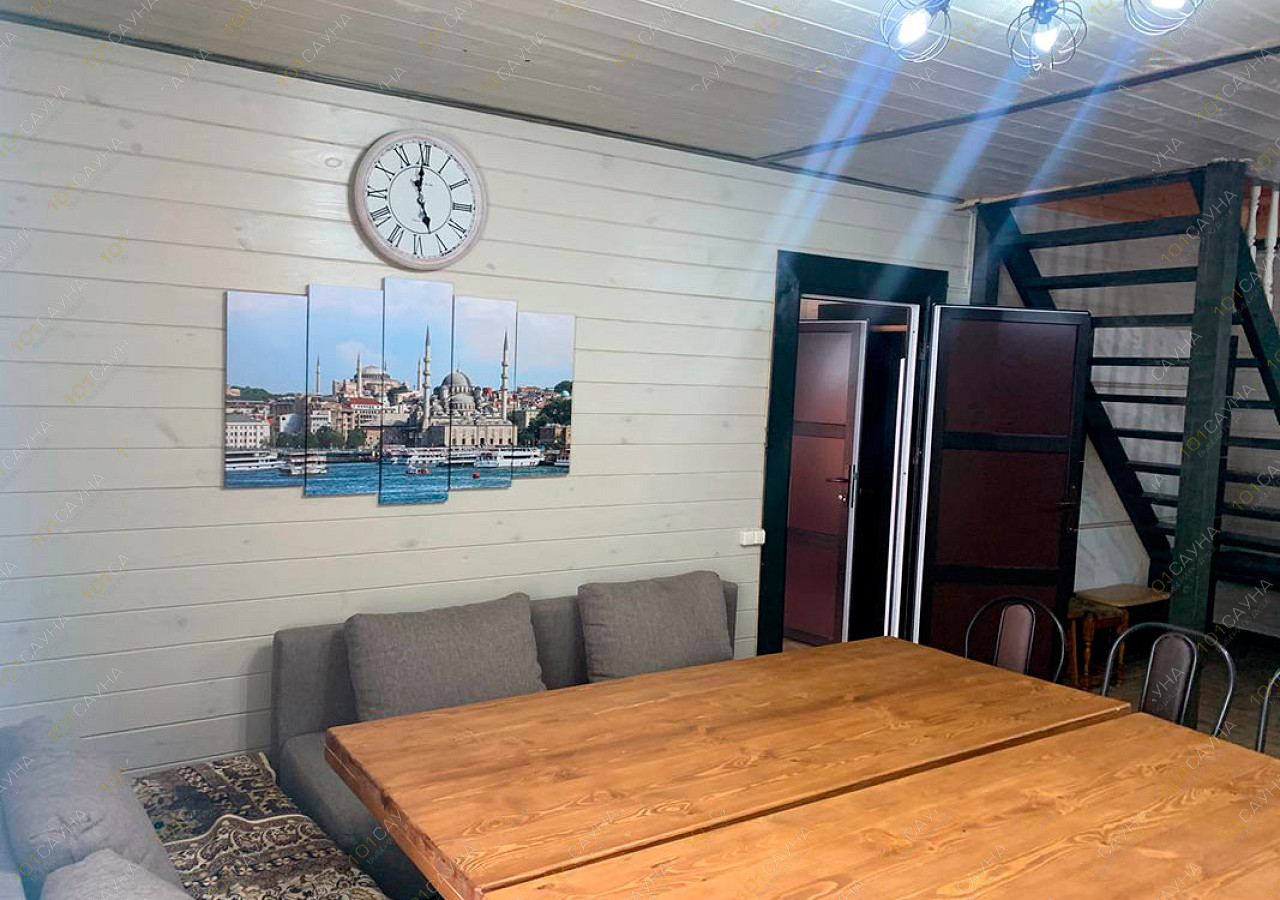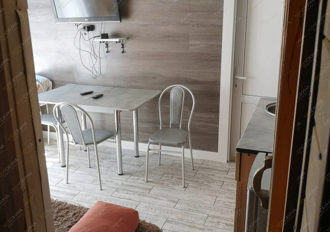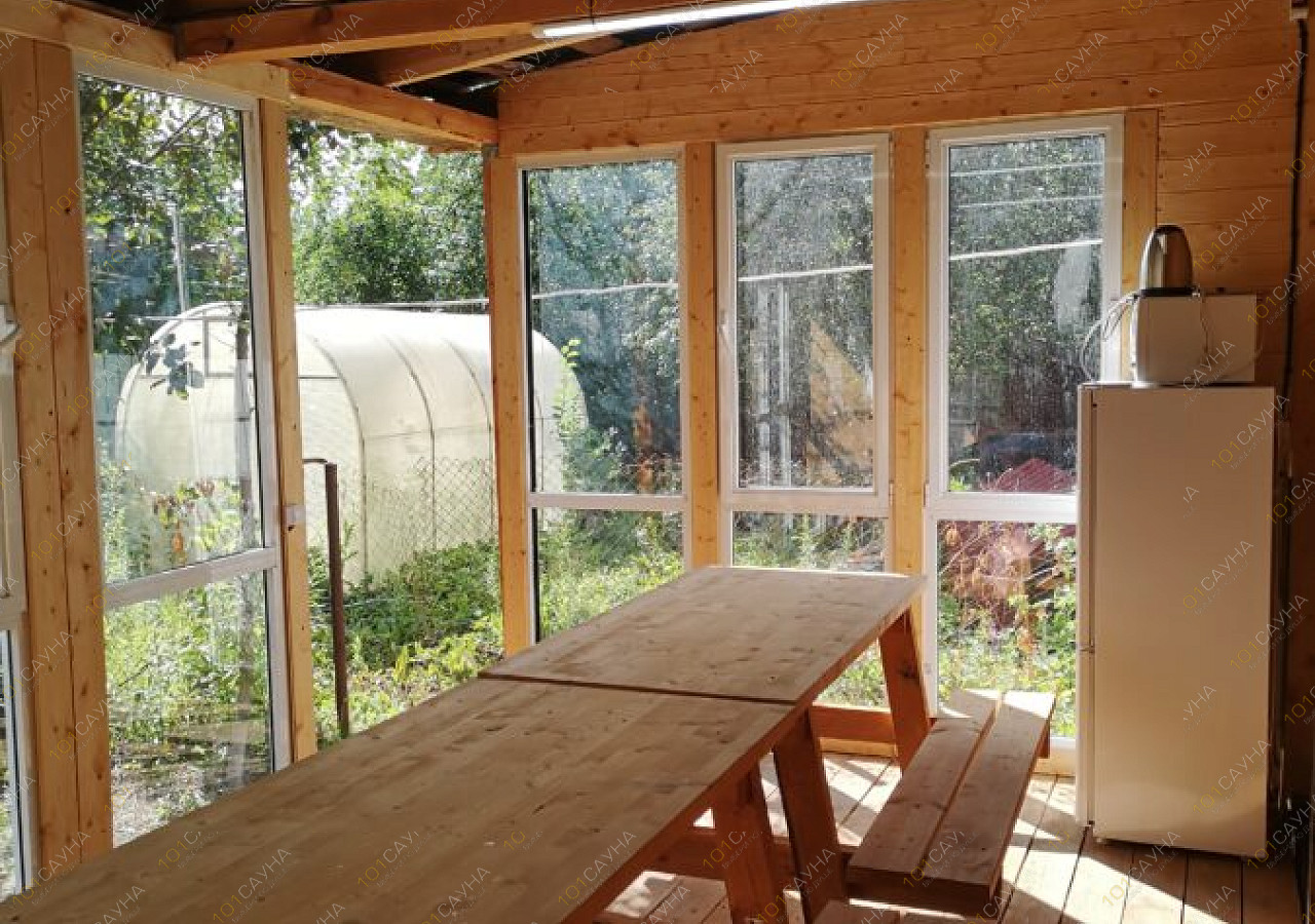 Самый маленький гостевой домик с очень небольшим двориком — изначально домик для двоих. День и вечер вы проводите с гостями (в домике может разместиться человек шесть, а во дворе за большим столом и больше десяти), паритесь, жарите шашлык, общаетесь и трапезничаете в дружной компании до самой ночи. А ночью остаётесь вдвоём. Только вы, ночь и звёзды. Если есть ребёнок, то для него предусмотрена раскладушка. Хоть сам двор совсем маленький — только для посиделок за столом, но преимущество домика для гостей с детьми — рядом детская площадка: детям будет чем заняться и они будут под присмотром просто при открытой калитке.