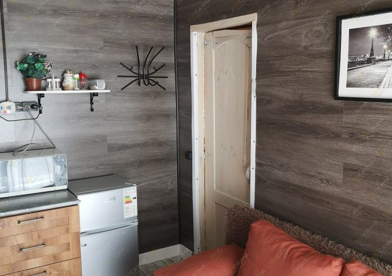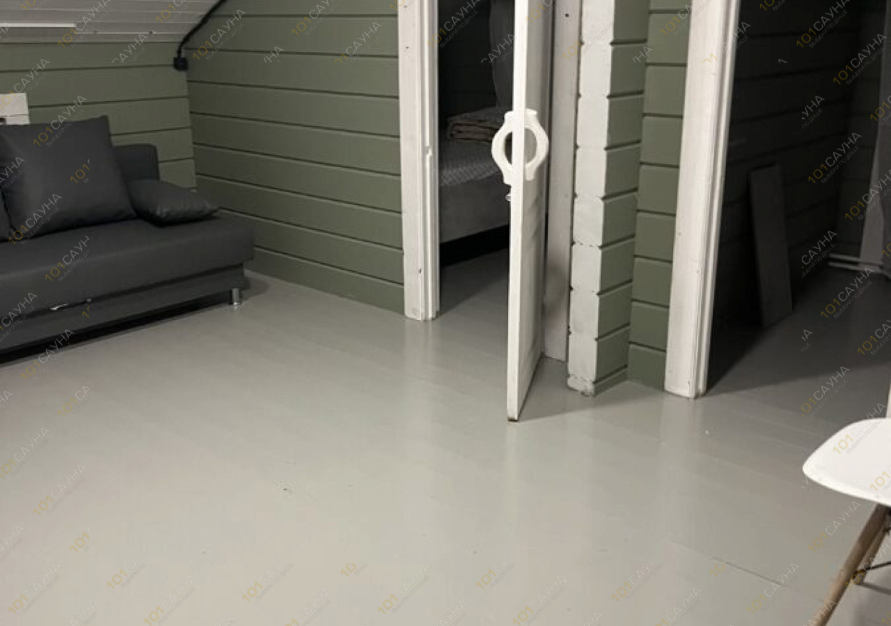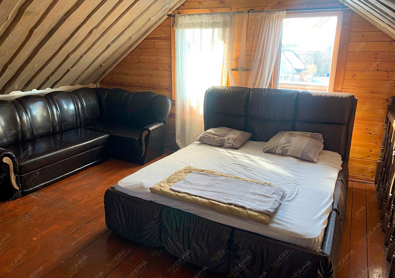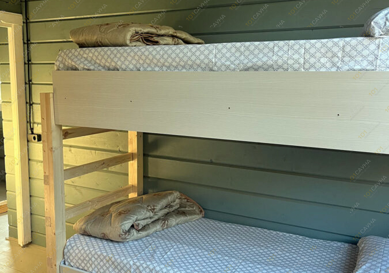 Дом-студия с одной спальней. Просторная гостиная совмещена с кухней. В комнате имеется двухспальная кровать и двухъярусная односпальная кровать. Два раскладных дивана. Сауна-баня, душевая, санузел.