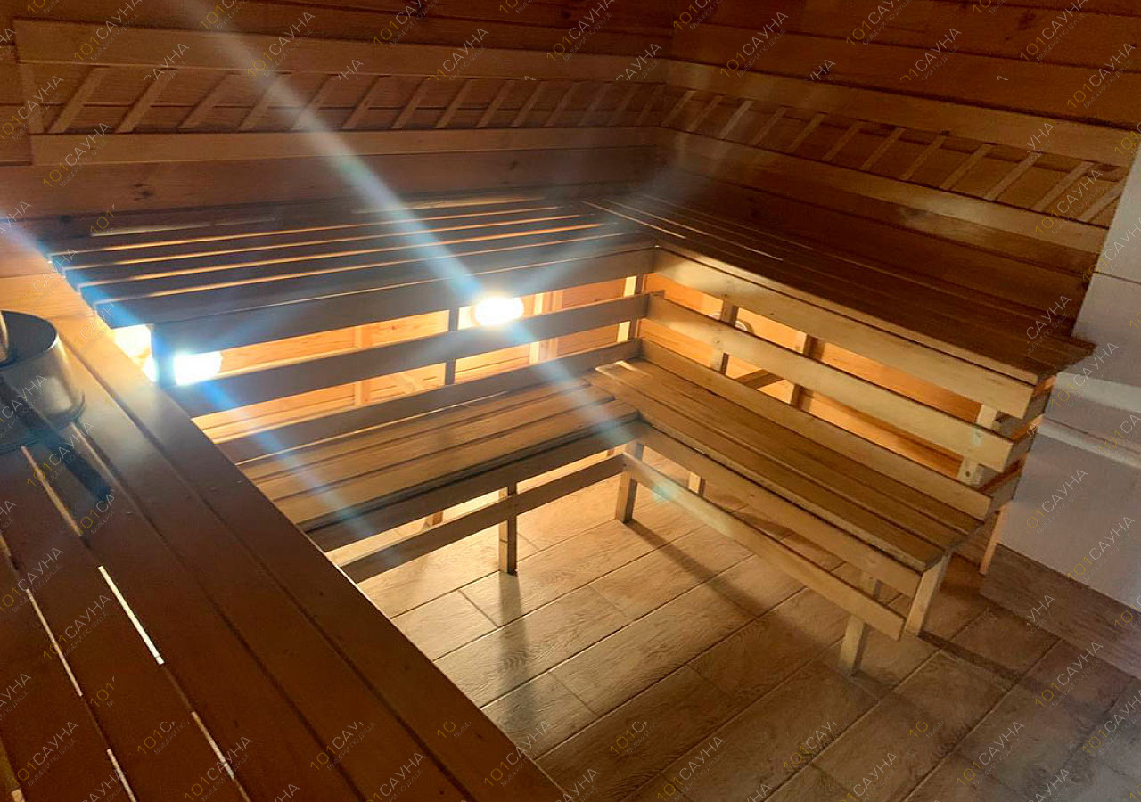 Средний дом, два этажа. На первом этаже кухня, совмещённая с гостиной, сауна-баня, купель с холодной водой, душевая, санузел. На втором — три спальни. Четыре кровати + раскладной диван. В доме: телевизор, холодильник, микроволновка, электроплита, электрочайник, посуда, фен для волос, Wi-Fi. Во дворе крытая беседка (с освещением) и мангал.